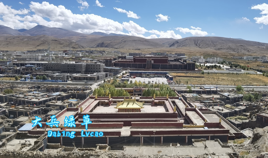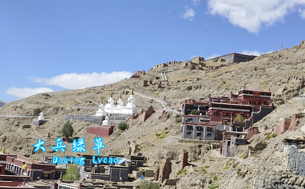 山坡上有五祖灵塔、拉章夏、扎西孜拉康。