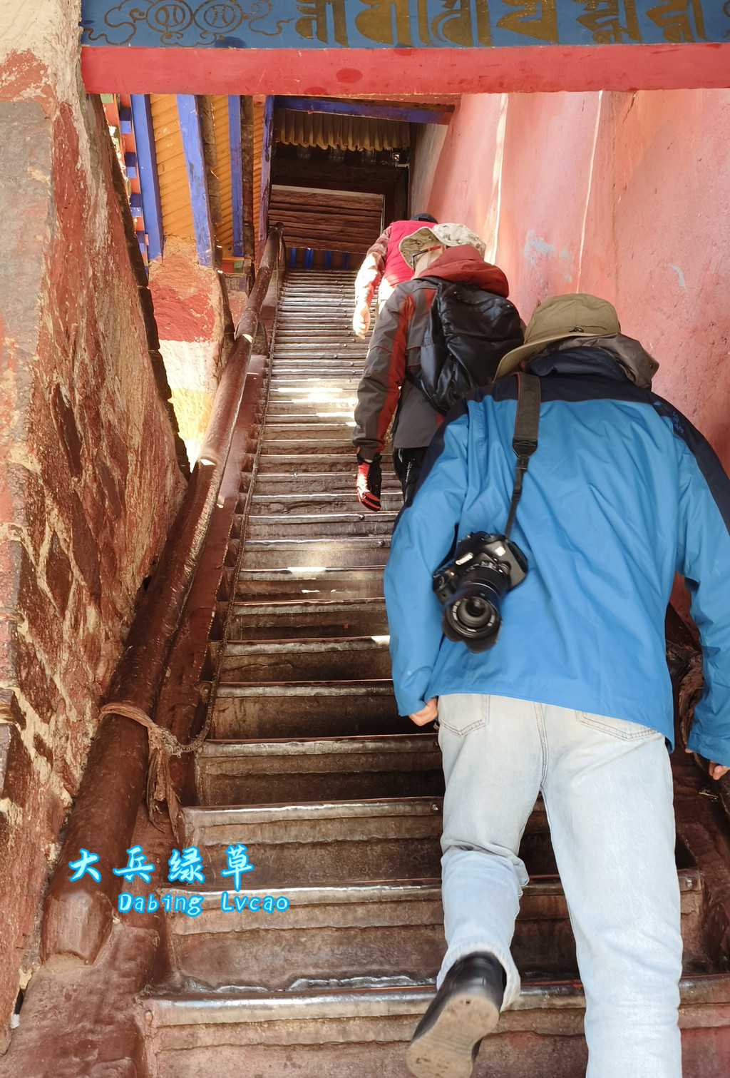 回到中庭前,发现大门左侧有一个“解脱梯”,遂爬上去看了看,原来可以爬到房顶上,顶上很宽敞,可以看见内庭里的活动情况。
