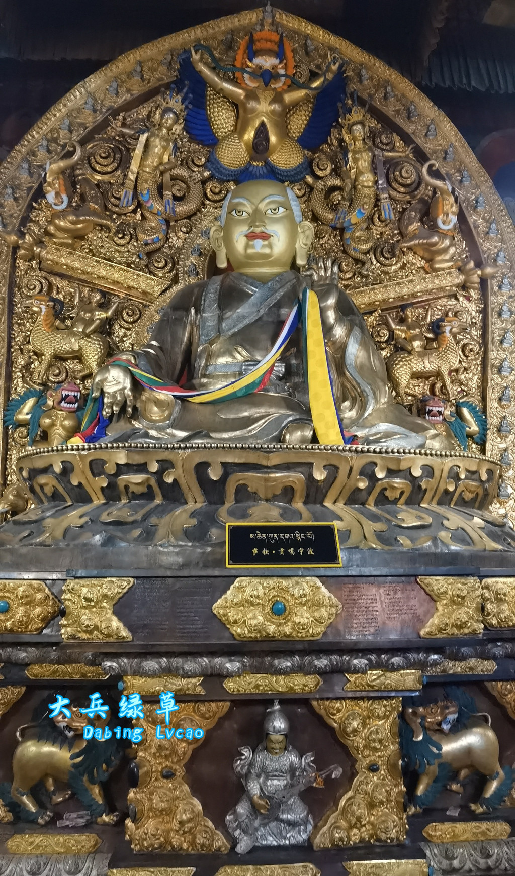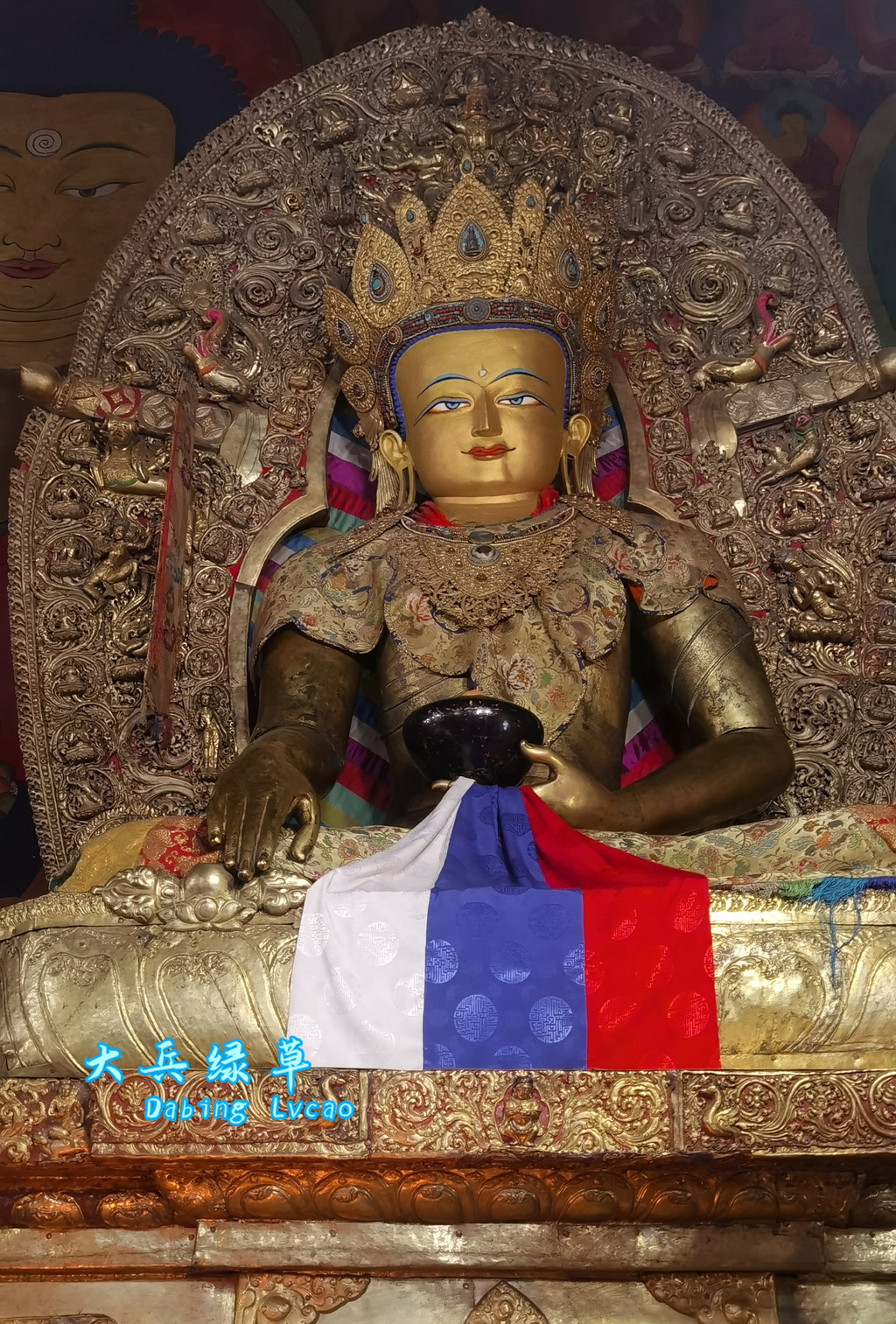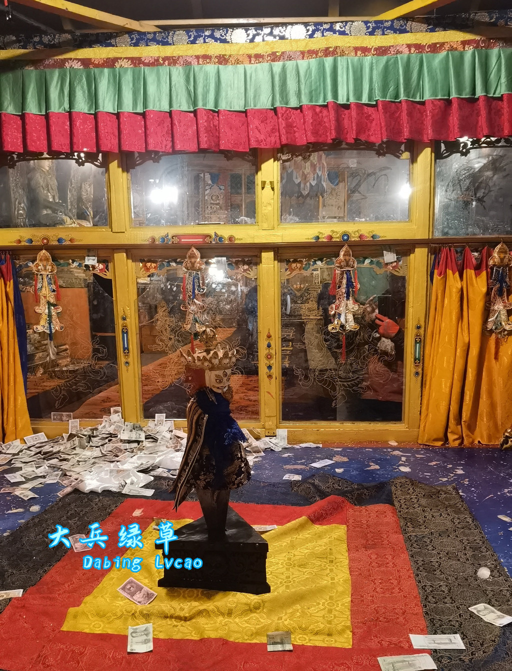 大殿里最重要的圣物是白海螺,据说它是释迦摩尼的随身之物,后为印度国王所得,印度国王又转赠中国皇室,元朝时,忽必烈皇帝赠与八思巴法王。我们在大殿参观时,看见一位活佛应信众所求拿出一只白海螺吹奏,由于殿内严禁拍照,只能瞻仰,不知道这白海螺是不是那只圣物。