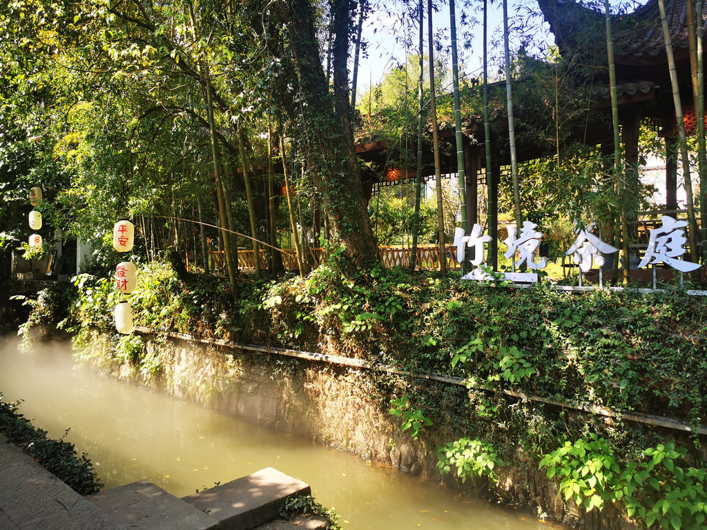 浅浅地走了一圈,买了当地居民自制的酸梅汁,品尝了酒酿,真是透心凉。还沉浸式探访了一家新开的旅拍店,不敌暑气,没敢尝试里三层、外三层的汉服和厚重的头饰,换个季节来体验下,在雾气袅袅的溪边,拍一组美美的照片。