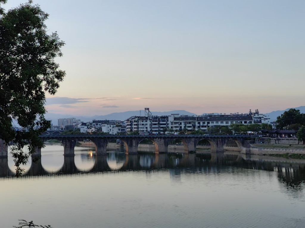 从艺龙酒店一路步行,便可来到太平桥。这座古桥见证千年风霜,屹立不倒,外表坚固美观,我们走的时候,临近黄昏,伫立桥上眺望远处美景,绿水漾入云天之上,晚霞映于碧波之中,两岸风景惹人感叹。