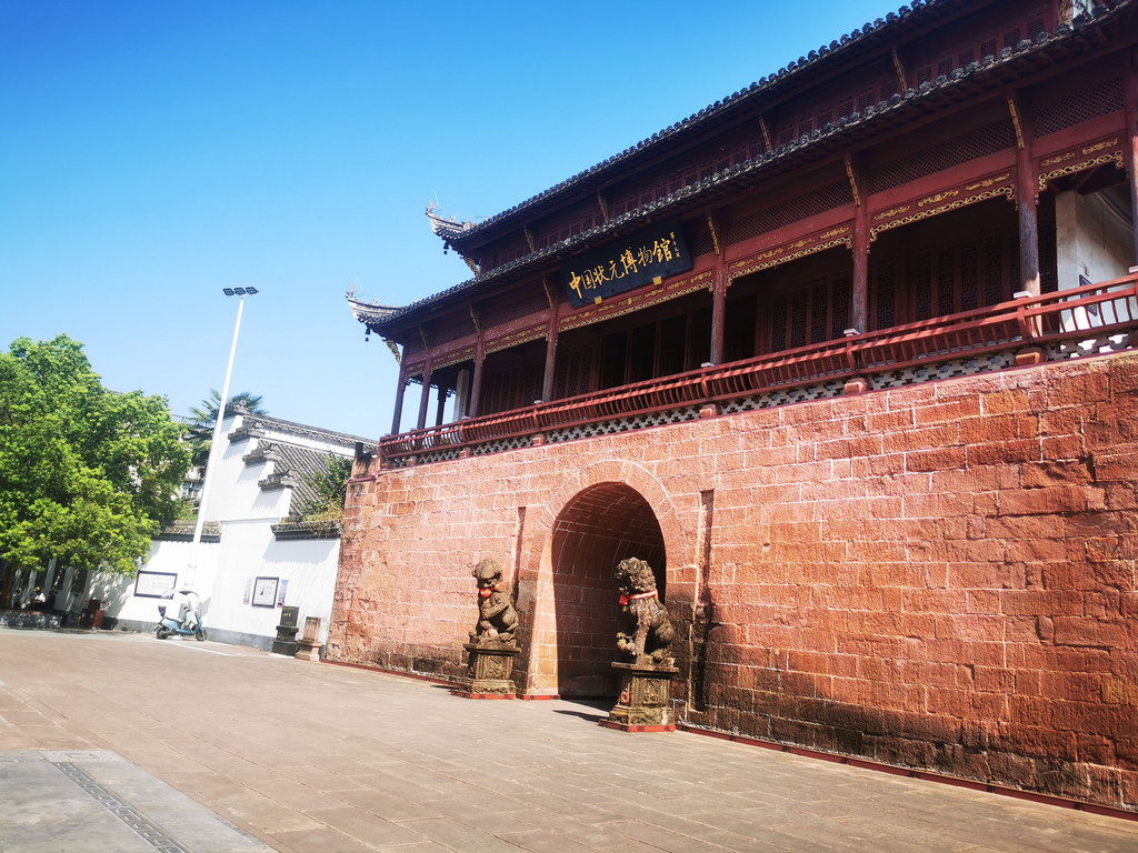 从徽州历史博物馆出来,我们来到南谯楼,据传这是古代夜间向人们报时的地方,打更的鼓声就是从谯楼传向四面八方的。我们现在见到的南谯楼,是1997年,由国家文物局拨款重建的,它基本保持了木构清代风格,门阙为宋代风格。