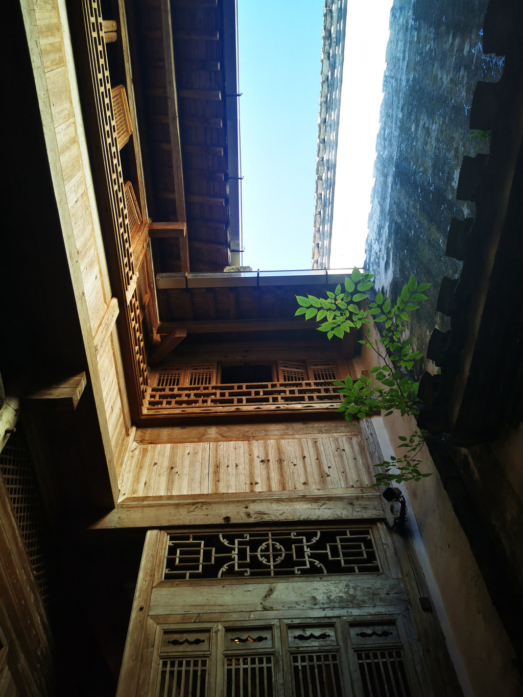 呈坎最有名的是罗东舒祠,进入村子,路真是七拐八绕,小姐姐带着我们参观完一个当地一家五个兄弟的住宅后,便直奔罗东舒祠而去。我倒觉得四水归堂的庭院很有诗意,古时有三四层之高,主人住一楼,顶楼是佣人居住,全是木质结构,目测为了迎客,有修缮的痕迹,空气中混合着木头和青苔的味道。