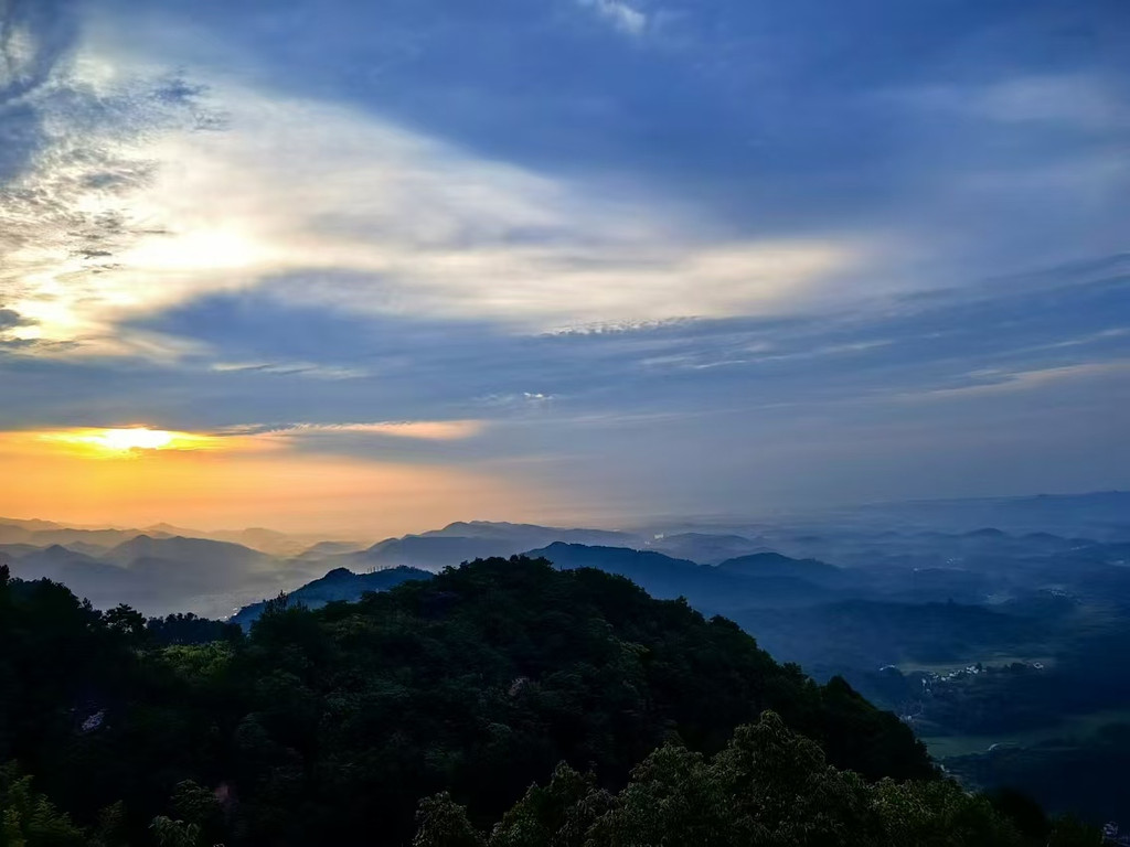 山上的日出,一定要克服睡懒觉的毛病,欣赏这万天霞光的磅礴之势。林语堂先生在《京华烟云》中也描写过泰山的日出,写得极妙,引用如下:“云中静悄悄,丝毫无动静,在那片桃红变深而成金色时,云彩,好像听到了什么命令,开始自夜中的睡眠醒来,在伸懒腰,在打哈欠。云彩的上层开始移动,移动之时,底层染上了起伏波动半透明的紫色。所有的云彩一齐向东飘去。云层上下堆积,成为天上金碧辉煌的宫阙。下面的山顶越发清楚,纤细可见,没被云层遮盖的大地,还在黑暗中静止不动。再过一刻钟,一条纤细闪亮的金线,勾出了地平线的轮廓;再过几分钟,两道霞光射入天空,预报太阳行将出现,使云彩金光耀目”……