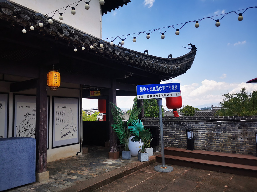 现在南谯头是茶馆,可以避暑喝茶,眺望美景,很惬意。茶馆里也有一些手作体验,如漆扇、茶粉冰箱贴、书法等,还有一个戏台,猜测定期会有戏剧表演,这里可以拿着通关文牒(当地的文创)盖所有的章,小孩子会很喜欢,值得一逛。