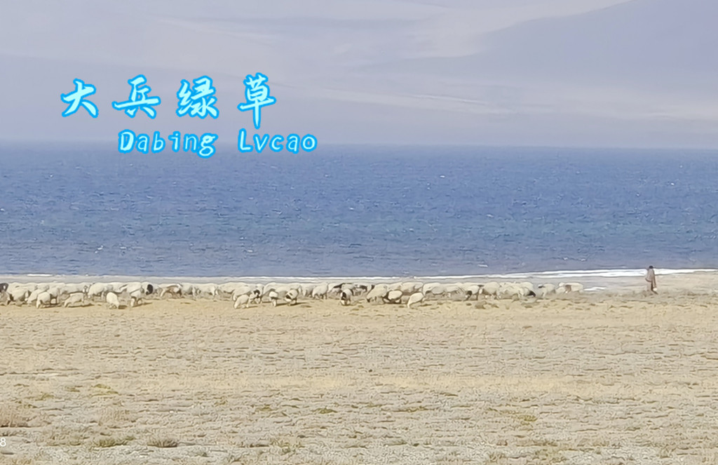 湖边羊牛成群,浩浩荡荡的。