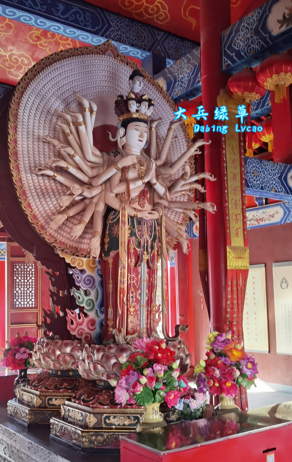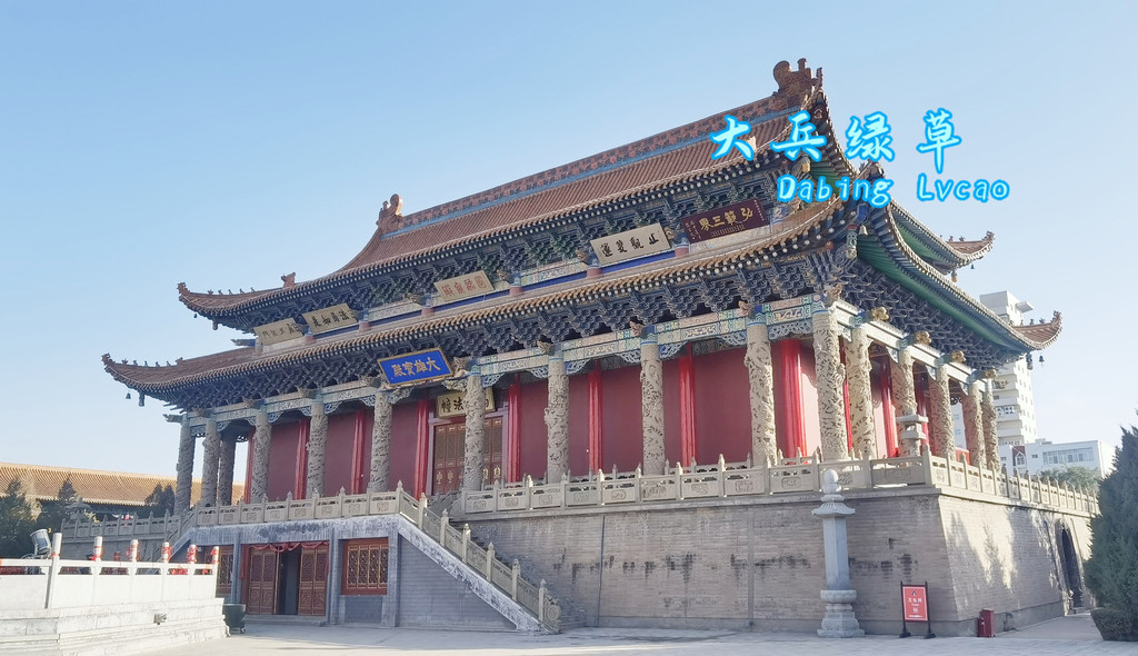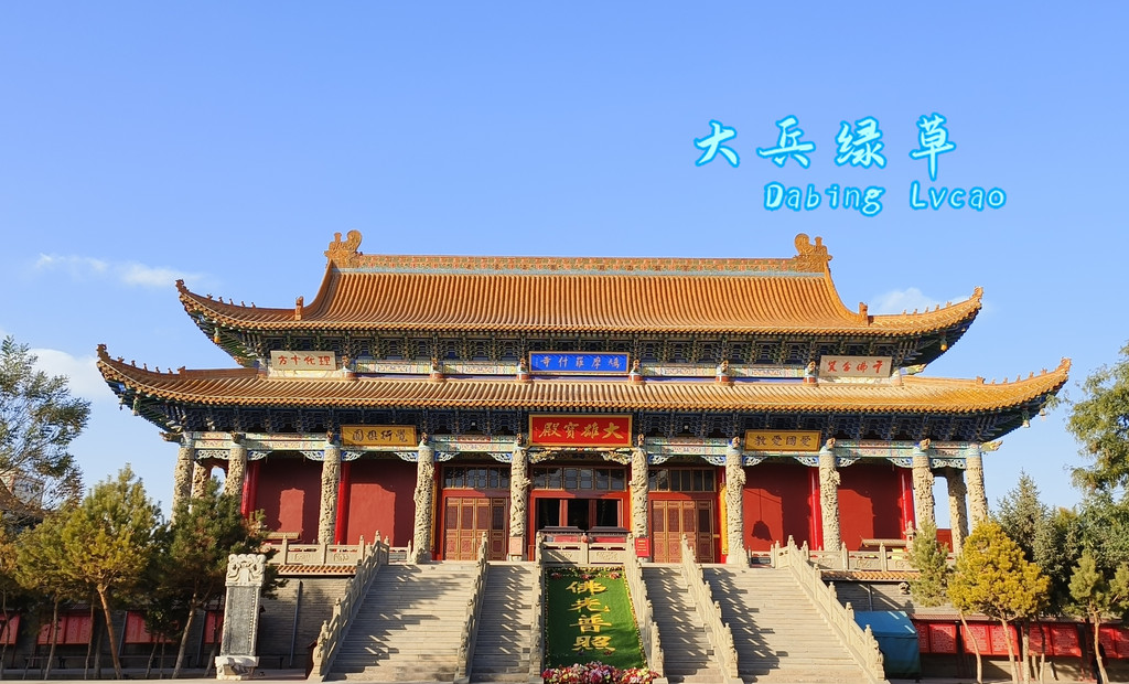 大雄宝殿位于罗什舍利塔的南侧,为重檐歇山顶式仿明建筑,高达29米,四周由28根石雕龙柱支撑,内深16米,长37米,是寺院内最大规模的单体建筑,上覆黄琉璃瓦,阳光下金光闪耀,更显庄重典雅,恢宏大气。