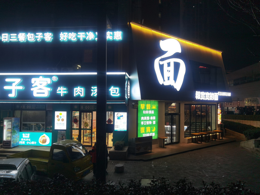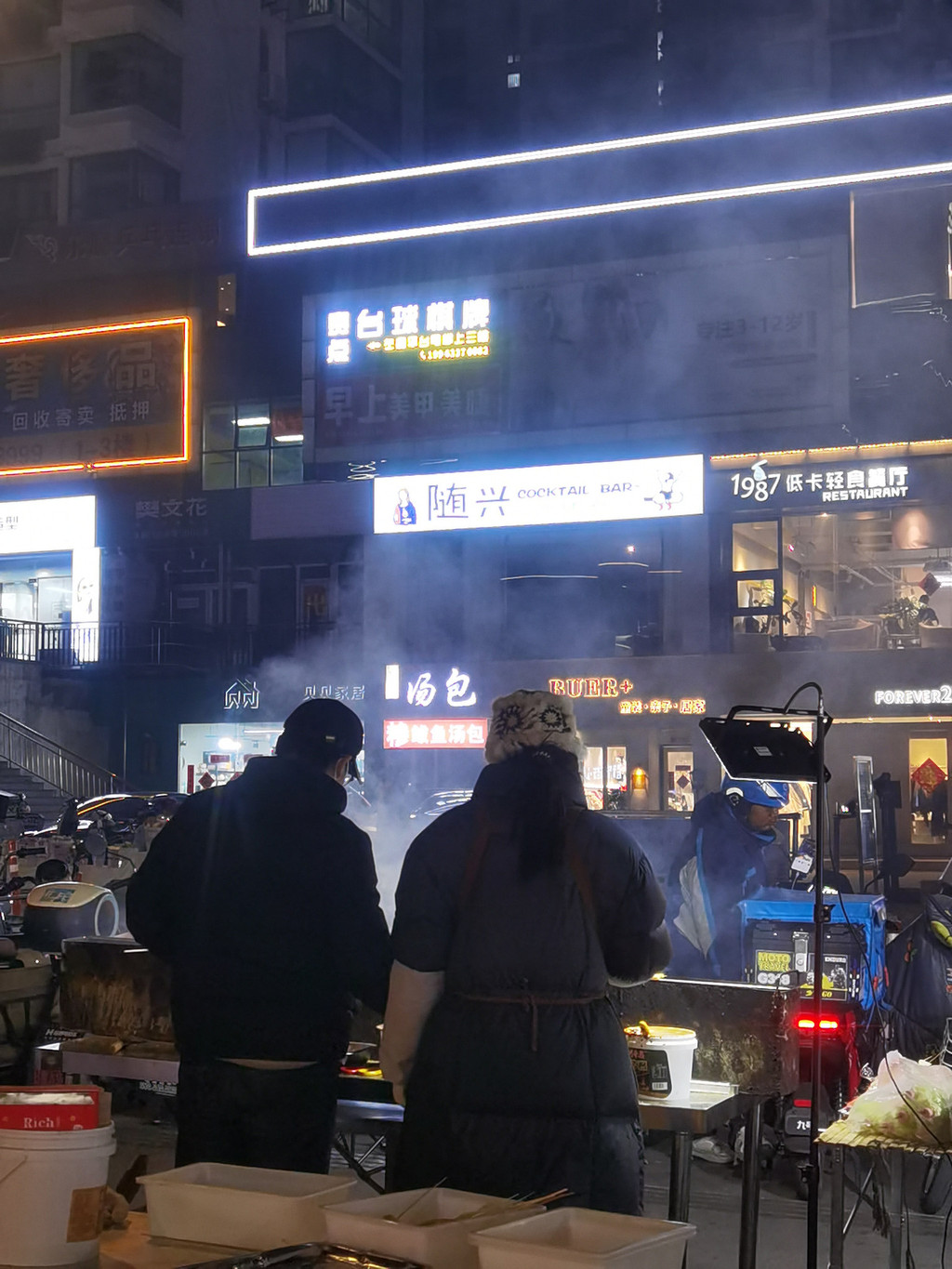 在万象汇转来转去,还是去吃了一碗拉面了事。两碗81元。酒店外的街上,各色店铺和馆子,灯火通明。还有不少摆摊卖小吃的,好几个摊主都是年轻夫妇。在游人眼里略显浪漫的烟火气,其实就是普通人为生计而奔波的真实影像。