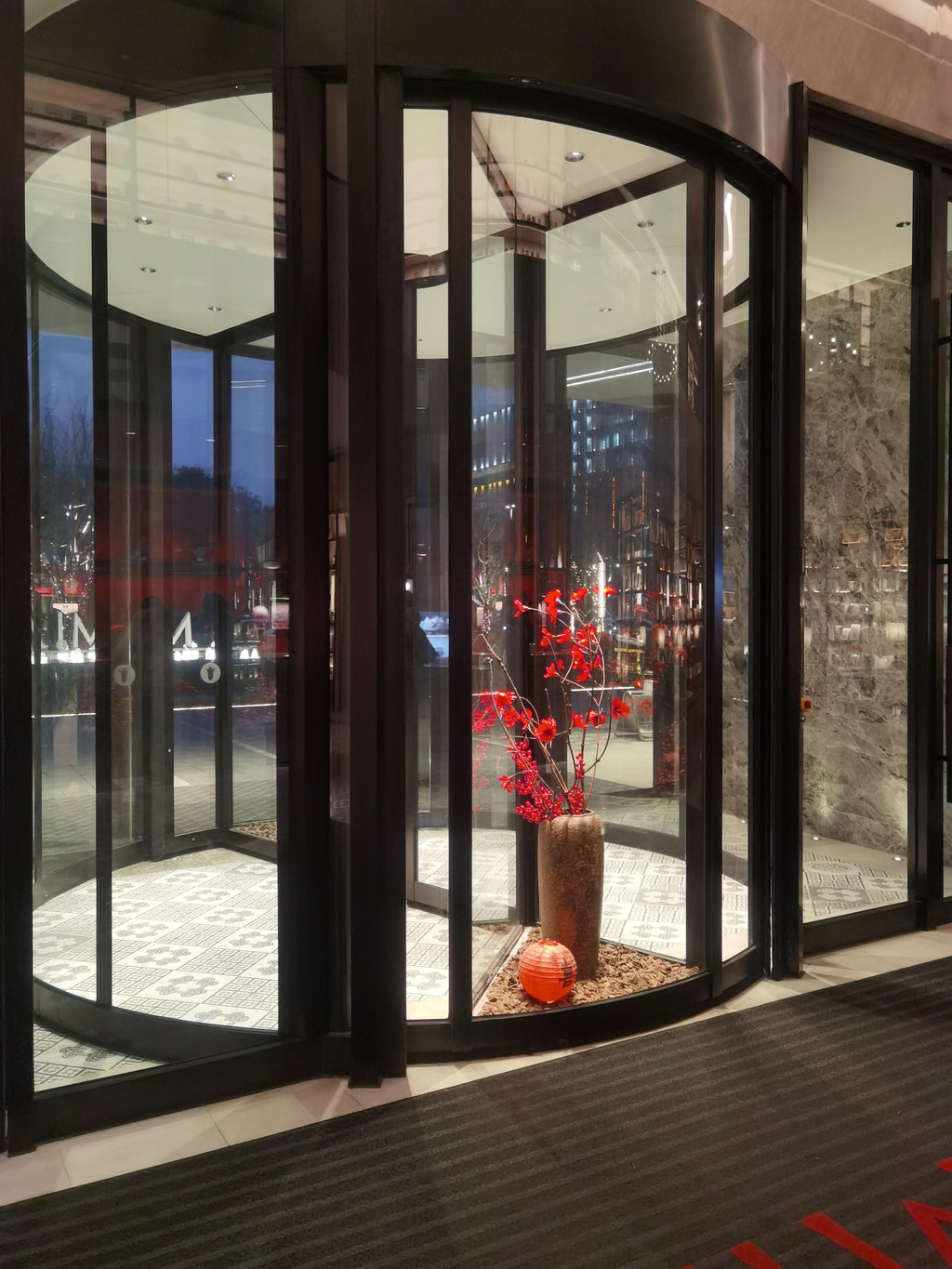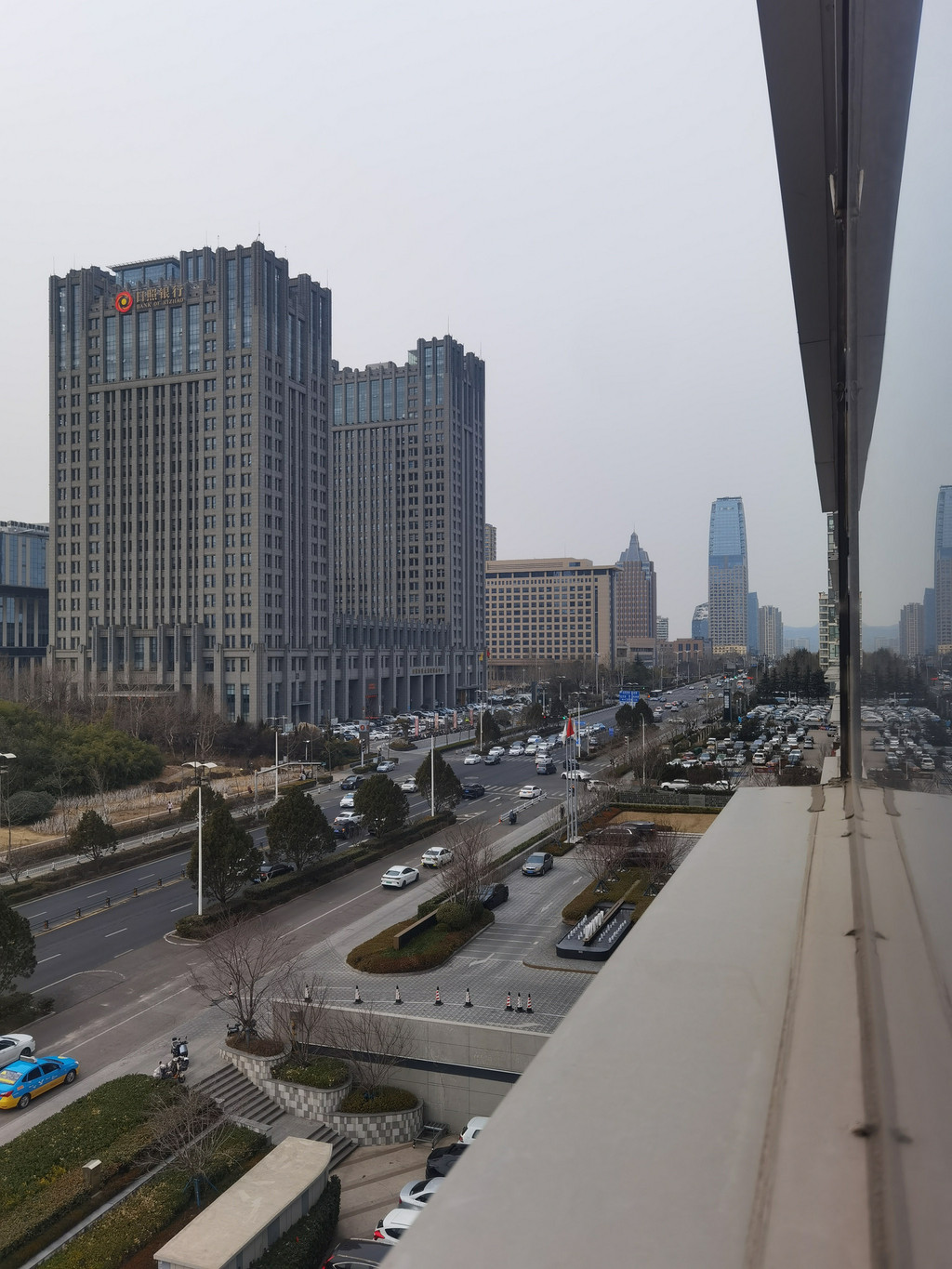 房间在7楼,窗外是大马路,对面是一个公园。窗前可看日落,只是玻璃有点脏。咖啡由机器人送过来,我们拿出咖啡以后,它还絮絮叨叨地要好评,说这样它妈妈就可以给它糖吃,哈哈哈!