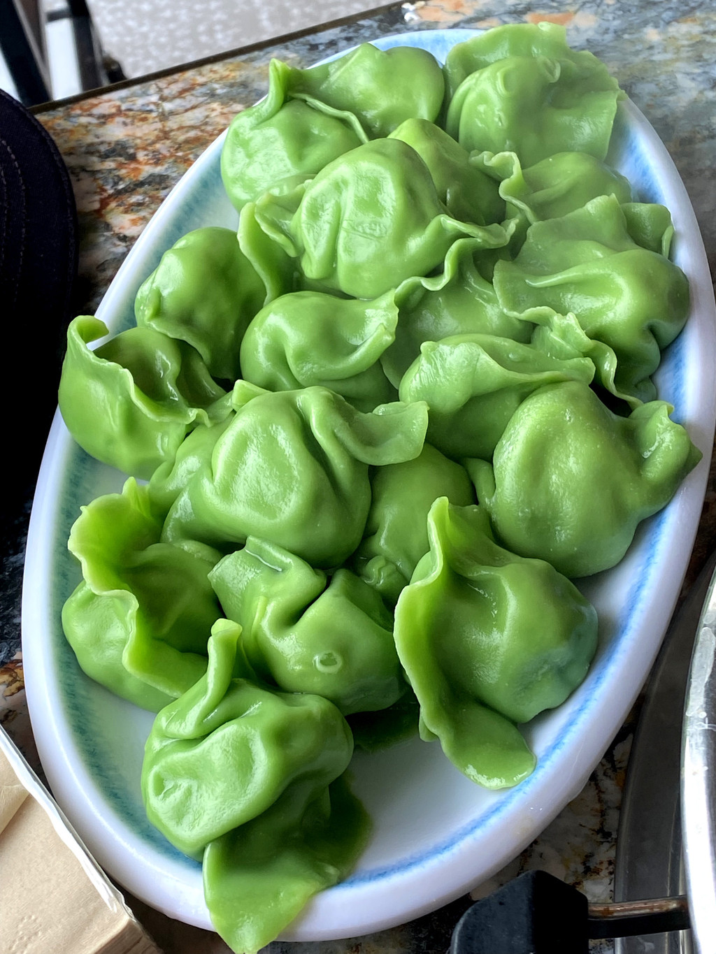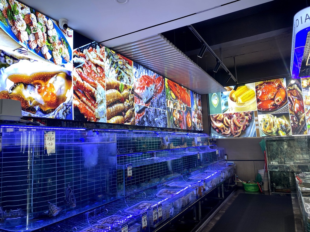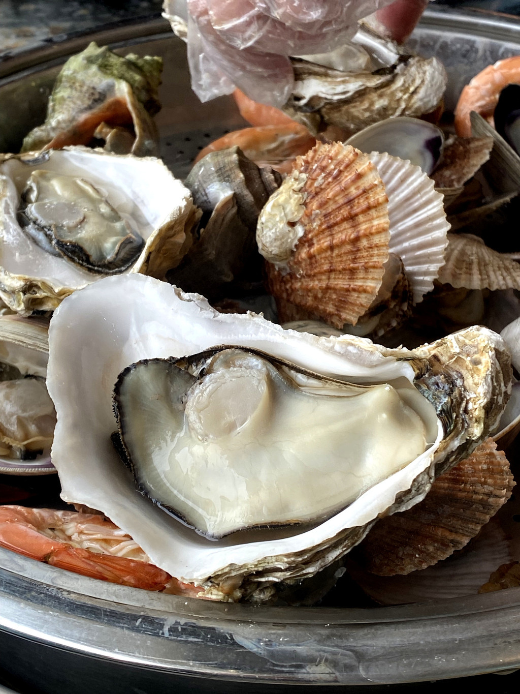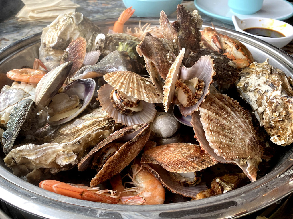 11:42到达吃饭的餐厅。老板听说我们是从网上看到店铺视频找过来的,就给我们打了个折,弄了一个蒸海鲜,送了一盘鲅鱼饺子。