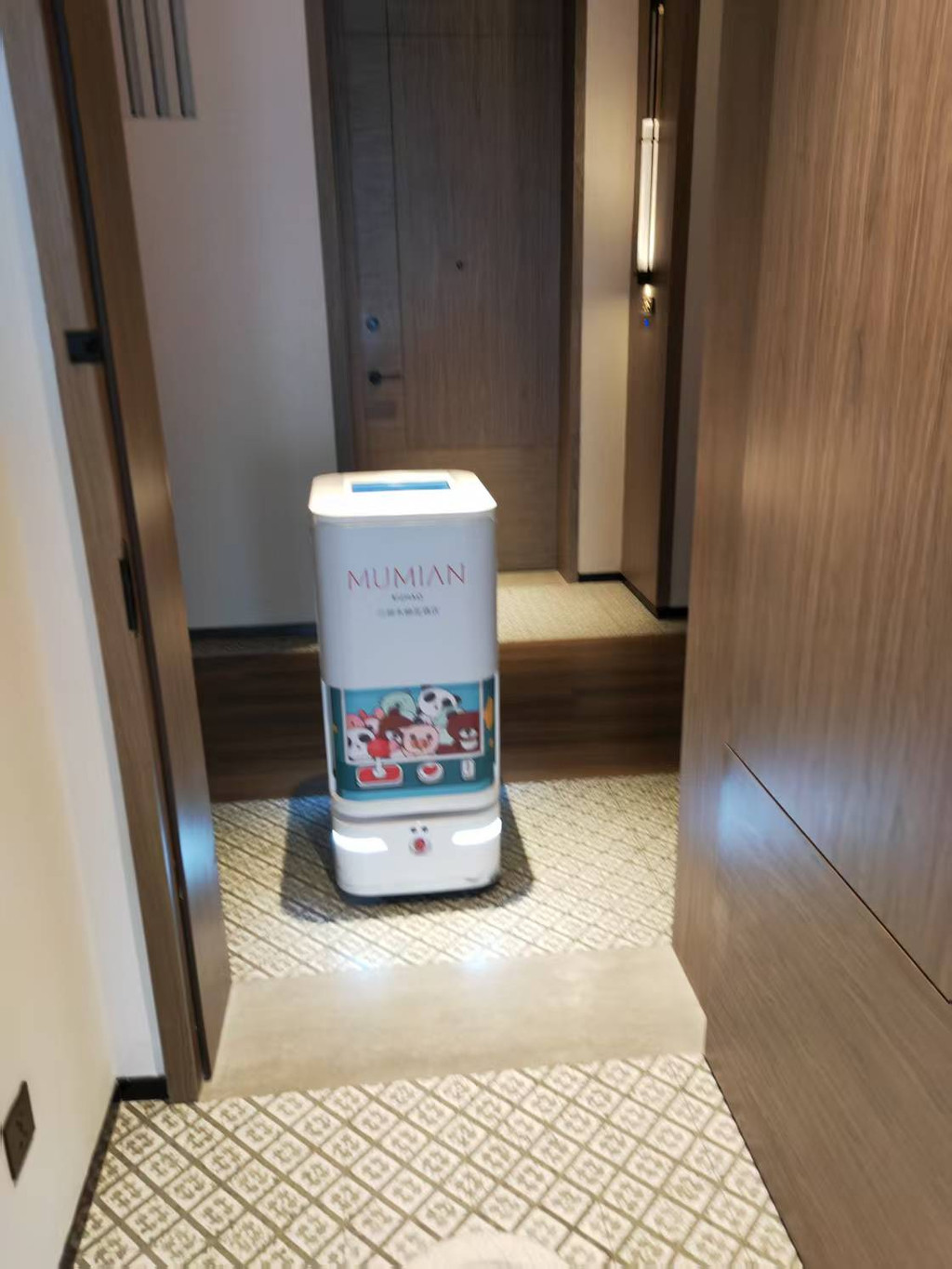 木棉花酒店规模不小,200多个房间,但是前台只有两个人,晚上我们出来的时候只有一个人!这用人也是用到极致了。机器人送餐已经很成熟,小哥把餐食放进机器人,然后给客人打电话,机器人就直接送上去,然后小机器人就用萌萌的口气再要好评......