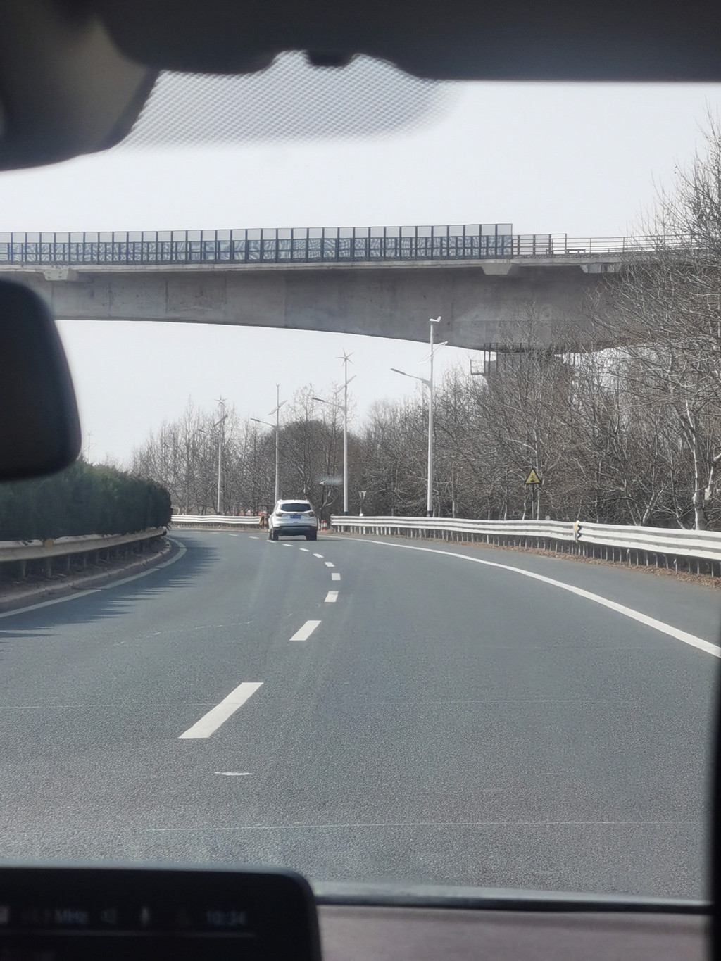 在黄岛没有走高速,但是这条路的路况还是很好的,车也不太多。听着王毅的记者会一路向前。