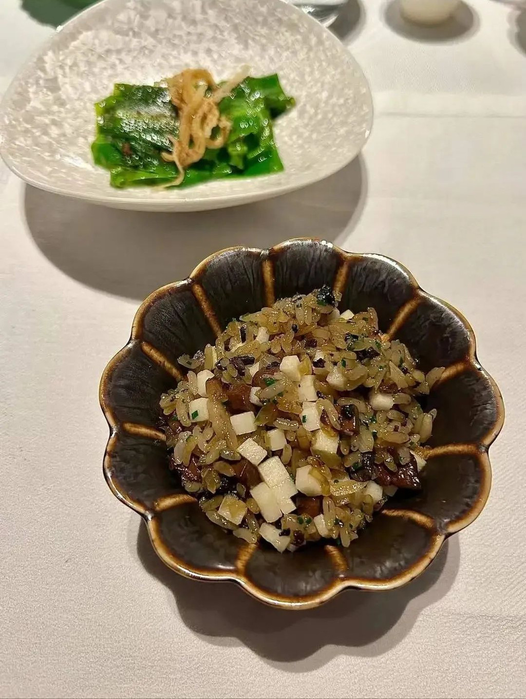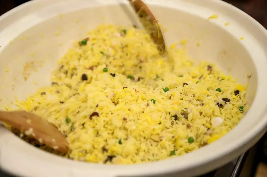 想象早年正午的日头晒得东关街的青石板发烫,铸铁锅正窜起三尺高的火苗,师傅单手持勺,隔夜的籼米饭与现划的河虾仁在热油中翻飞,蛋液裹着米粒在锅底烙出金黄的盔甲,香菇香、干贝香、葱香…香香入魂。这座被唐诗宋词浸泡千年的城市,每粒炒饭都是淮扬菜系的兵法,演绎着“金裹银”的江湖规矩。