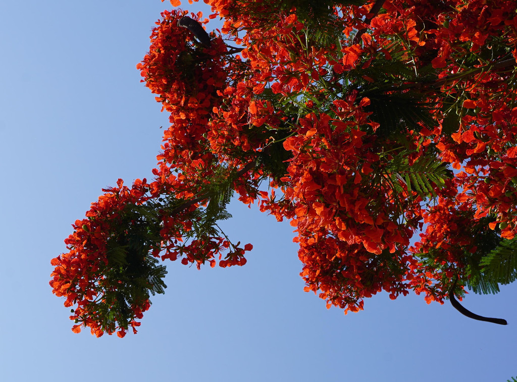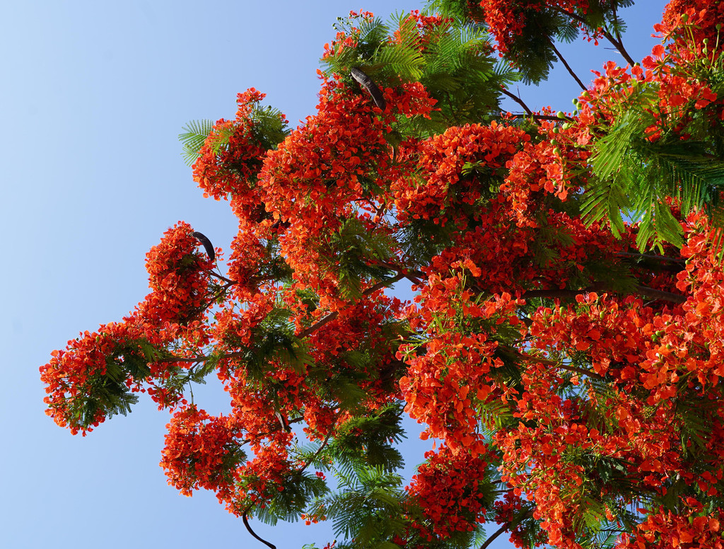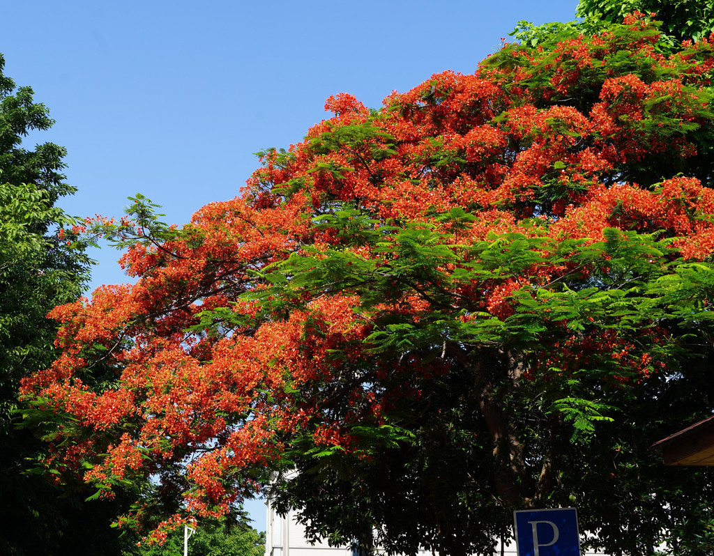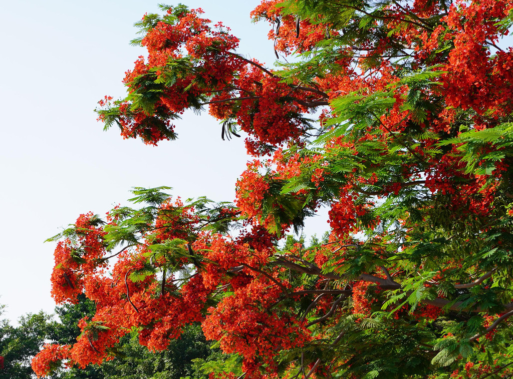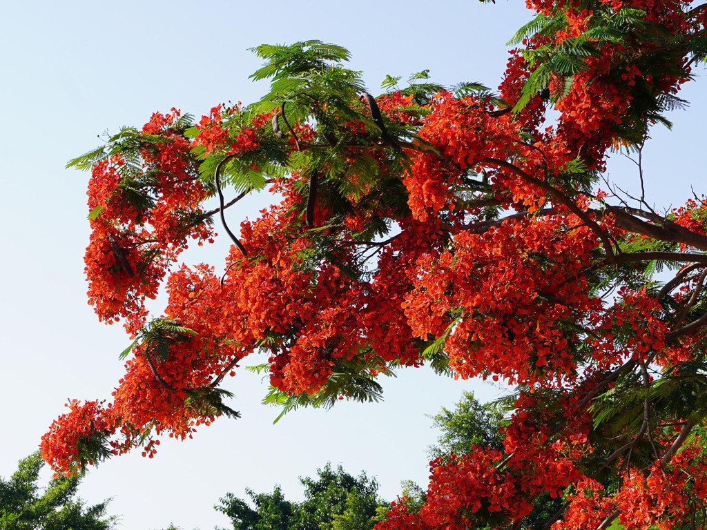 厦门凤凰木的花期一般集中在 5 月至 9 月,5 月下旬到 6 月、7 月为盛花期。