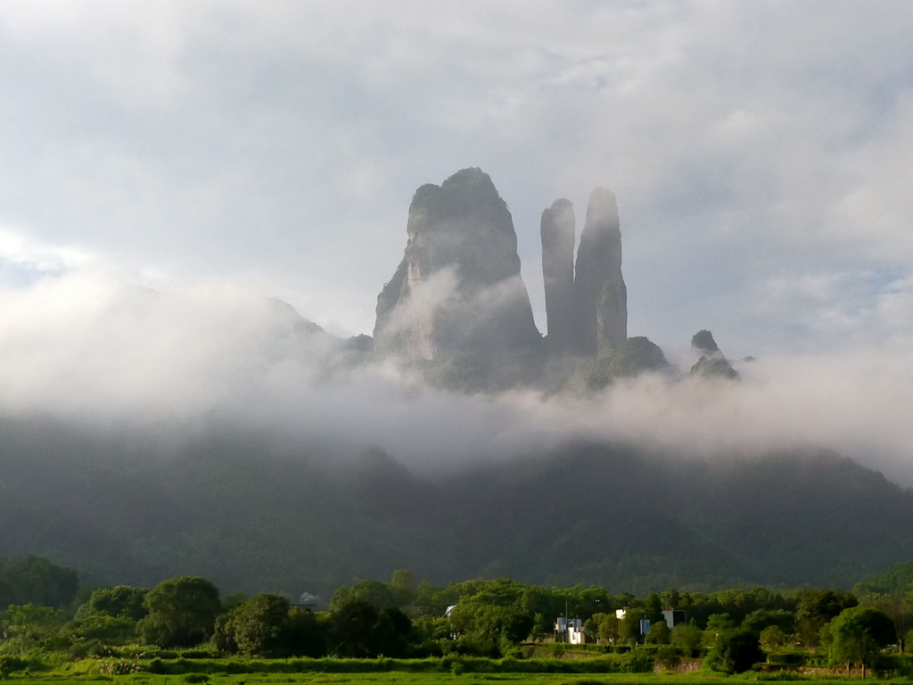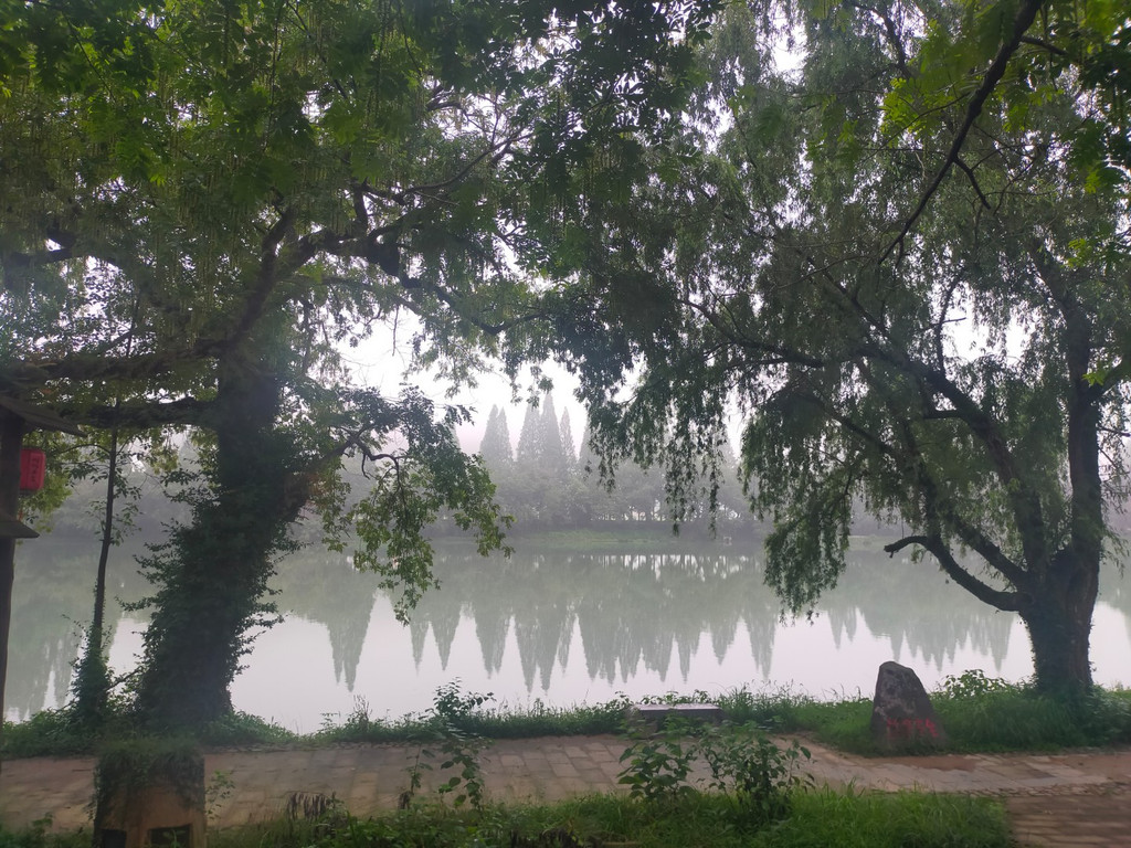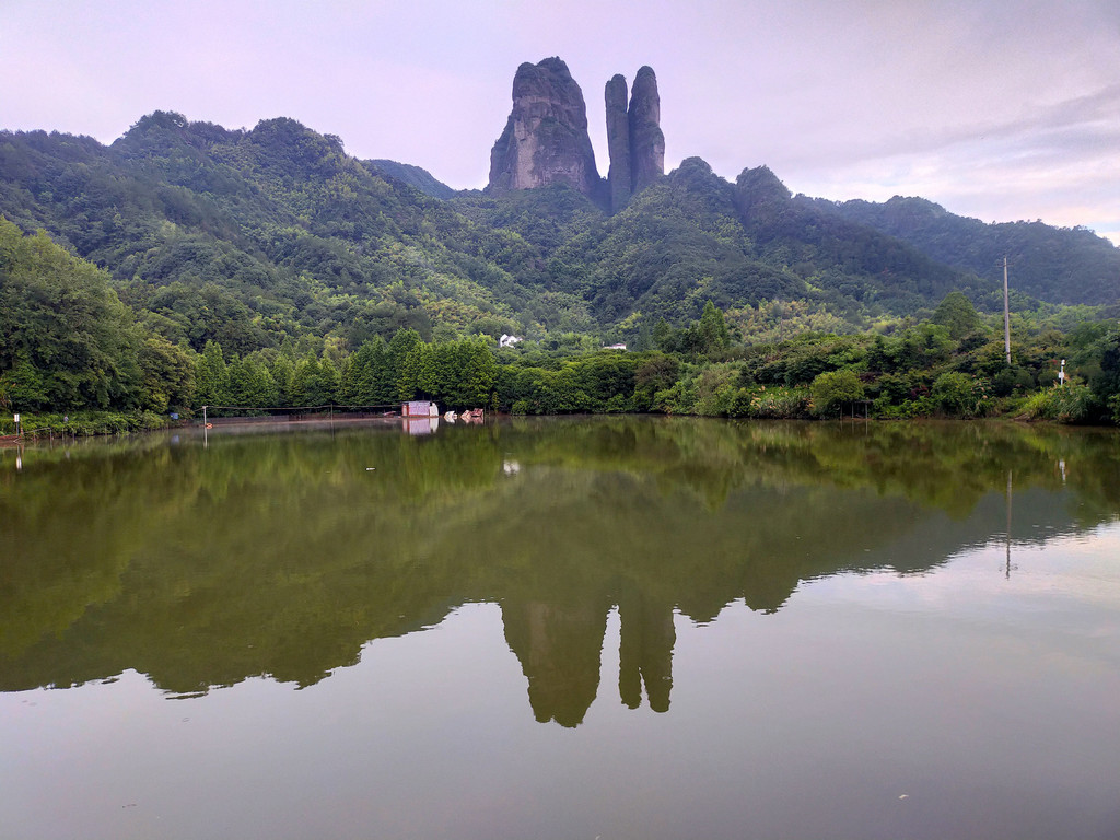 须女湖其实就是一个大水库,由于山雨欲来,景区里面居然就我一个人。刚爬上大坝一阵暴雨倾盆而下,幸好湖边有一个长廊,我稳稳坐下,打开刚从客栈泡的浓茶,眼前雨景渺渺,淡雾笼罩,忘却了旅途劳累及诸事纷扰。雨罢,又去了另一个景点“天伴江郎”这是一个可以远眺江郎山全貌的地方,不是当地人指点我真找不到这样好的摄影方位。