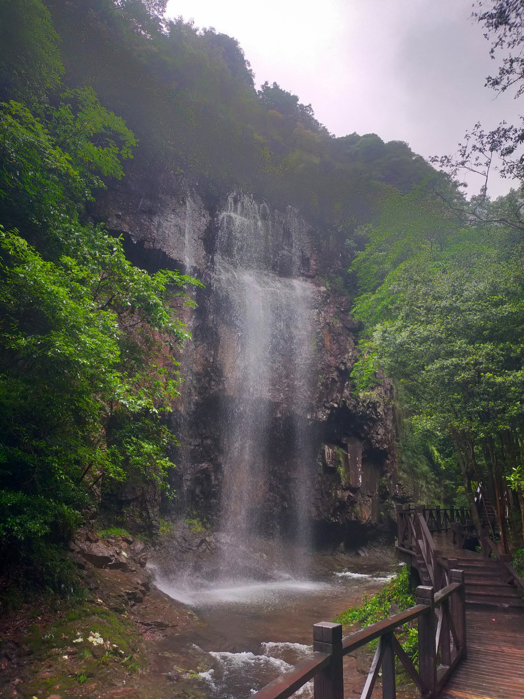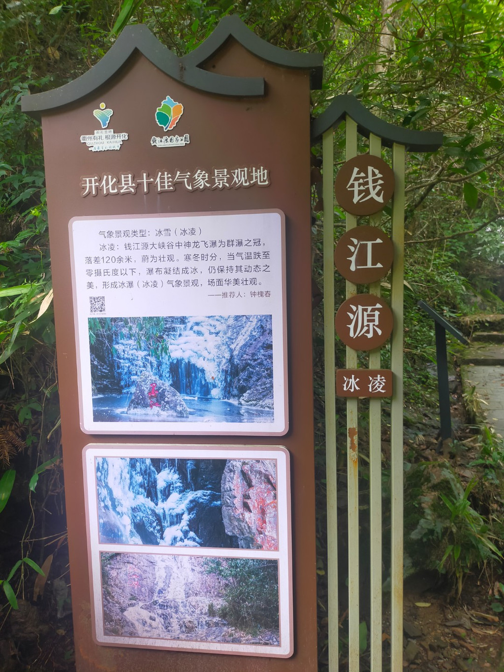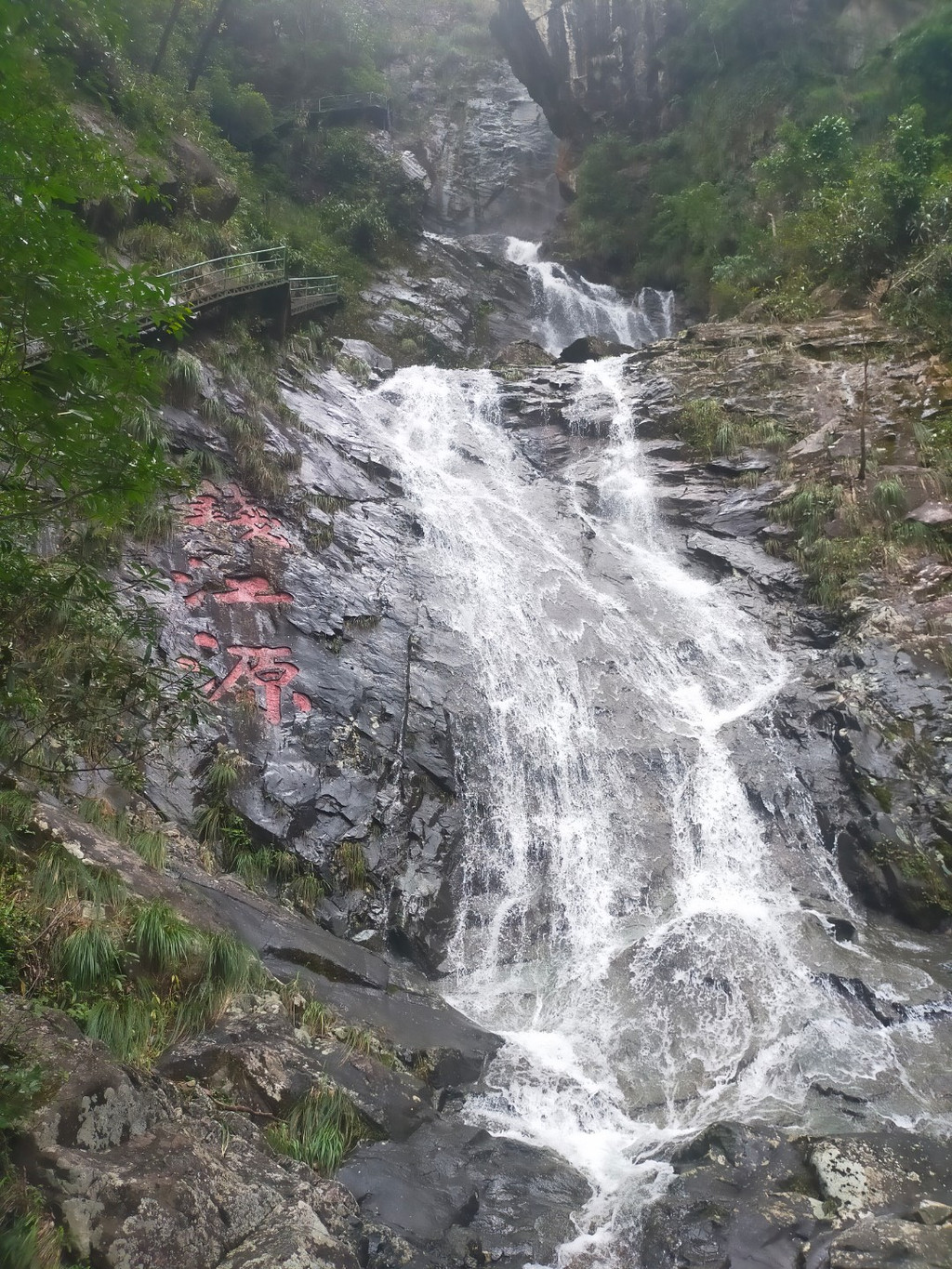 开化的精华在钱江源国家公园。沿栈道深入古田山原始森林,南方红豆杉树冠蔽日,白鹇倏忽掠过溪涧。到进景区就听到瀑布的轰鸣声,爬山过程中沿途都是李子树,已经结出了累累硕果。爬到瀑布底下看到一块牌子挡住去路“景区整修,游客止步”。其实景区也没有什么人,当即决定翻栏而上,一口气爬到山顶飞溅的瀑布源头。这段路年久失修的确比较险,旅行有时候也就是冒险探索。