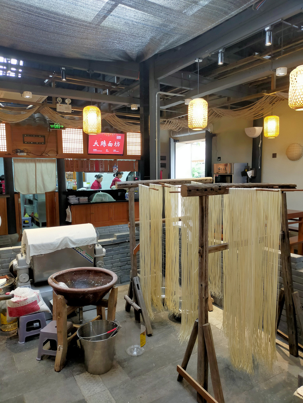 出了江郎山景区直接转直通车去“廿八都古镇”。探访廿八都古镇,仿佛踏入时空夹层。浙闽赣皖四省建筑风格在此交融,13种方言在青石板巷间流淌。镇上浔里老街仍保留着清末风貌,时光仿佛停留在那些古色古香、雕梁画栋的明清建筑上。青石板路上,徽式的马头墙、闽式风格土墙与门楼、江浙流派屋脊和里厅,三省的建筑风格交织在一起,被当地人称为“活着的古建筑博物馆”。我触摸着百年夯土墙,看老匠人编竹器,卖蓑衣恍如穿越时空。走累了安安心心坐下,点碗传统的“大陈面”,用浙江方言和老板娘聊起了这面的由来,大陈面是大陈村独有的美食,制作工艺在这里已经传承了500多年。大陈面的制作并不复杂,所以村里老老少少都会做这种面。制作大陈面的过程其实很简单。先把面揉好,再把揉好的面团压成面饼,反复碾压之后的面饼柔韧而富有光泽。在压面机的一入一出之间,一根根细长的面条倾泻而出。面条晾晒之后,经过简单的烹饪,一碗香气四溢的大陈面便可上桌了。