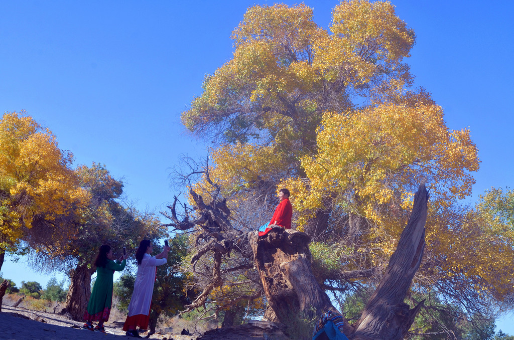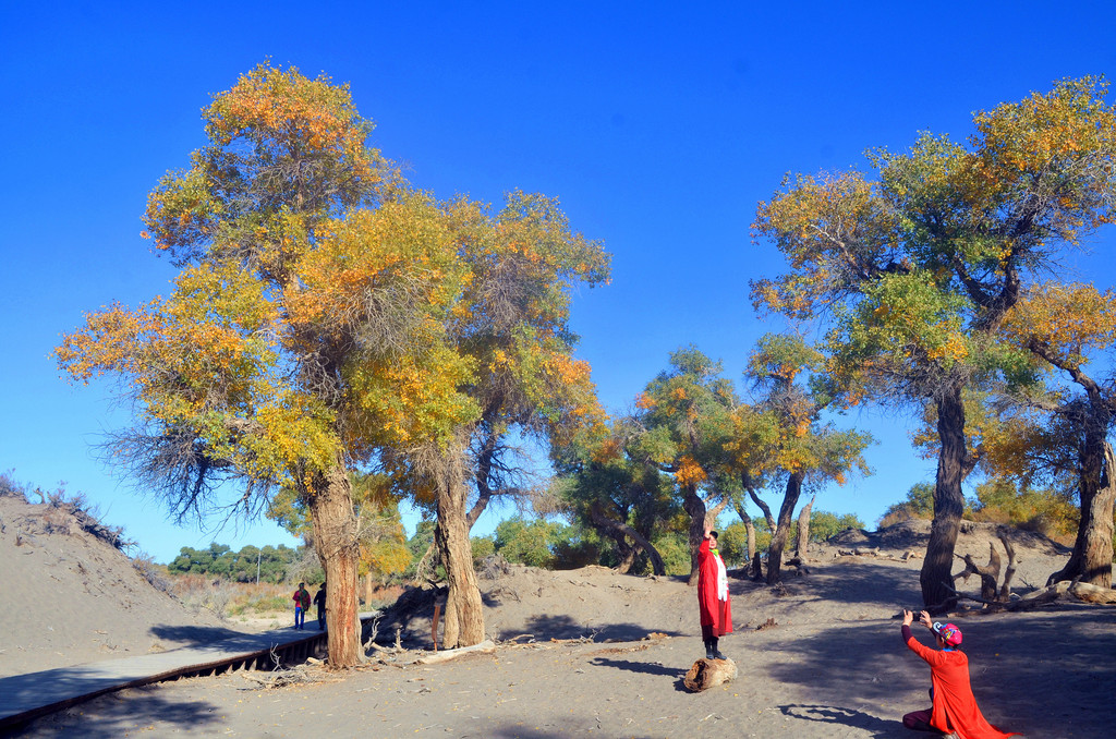 有人说:如果你爱一个人,就带她去看额济纳旗的秋天吧,因为那里的大漠胡杨就是天堂。