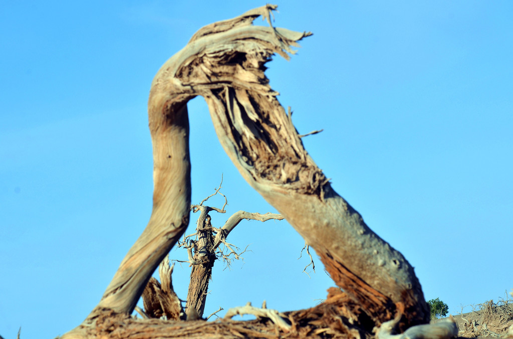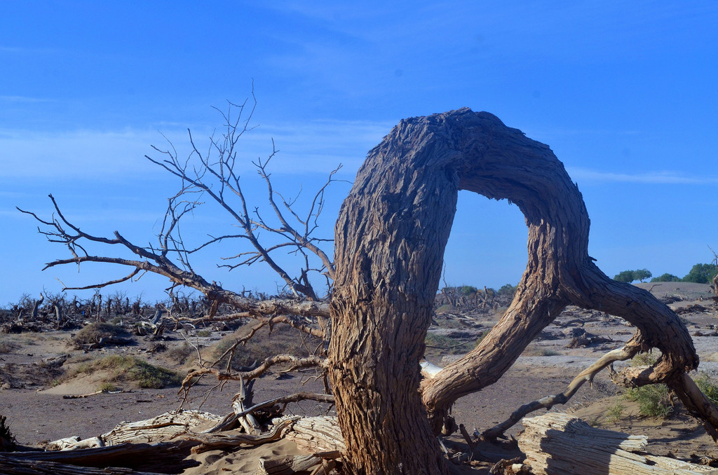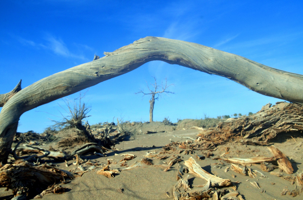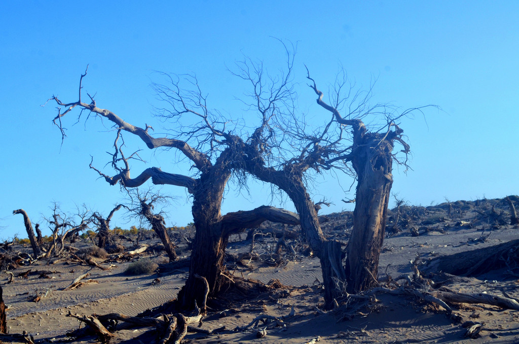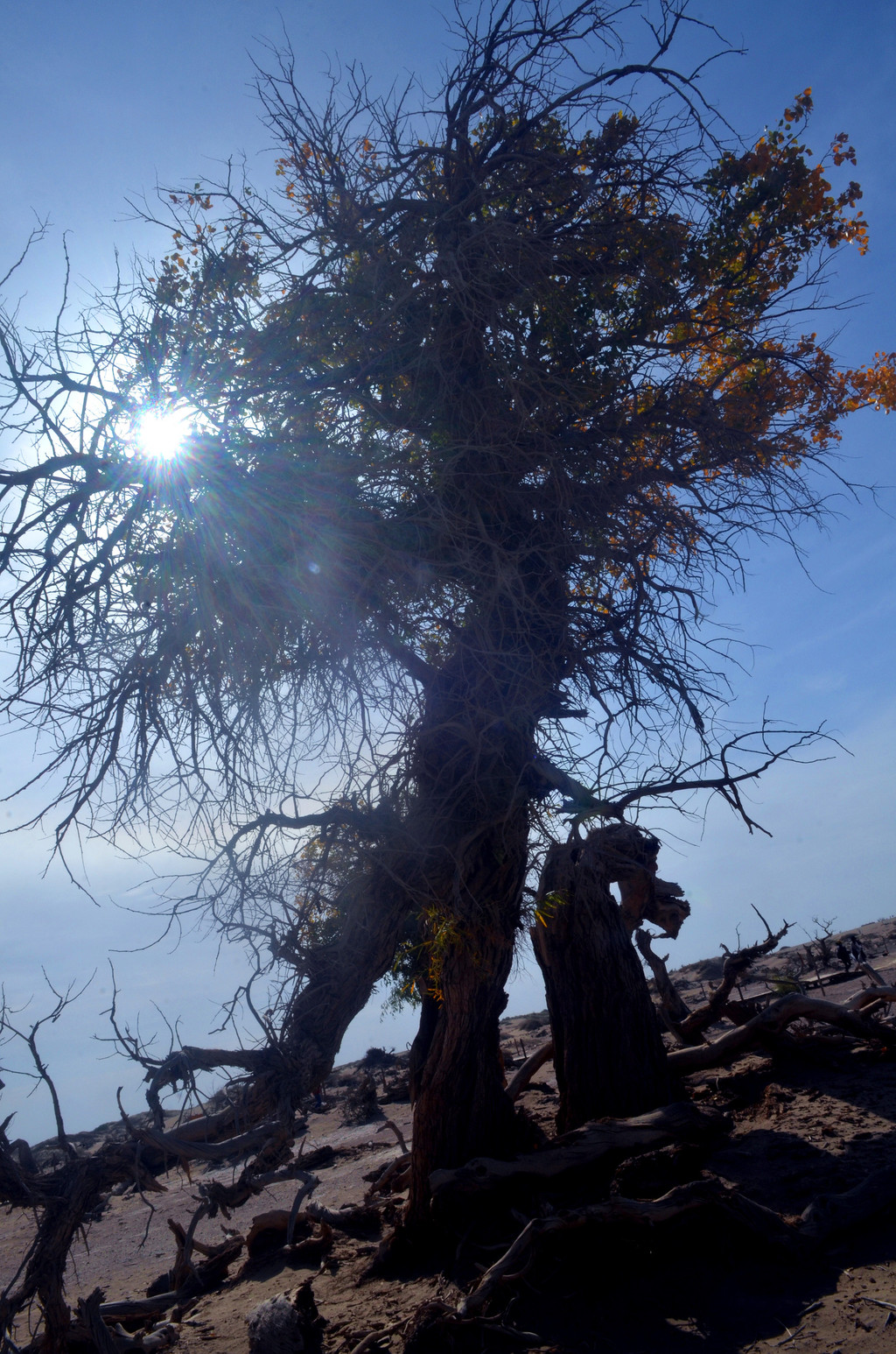 特别是在濒临死亡的时刻,胡杨也会将所爱的枝条死死撑起,扶着他,让他能够巍然屹立,傲然于世;他们就象我们人类一样,一起生长,一起奋斗,一起悲伤,一起欢唱。
