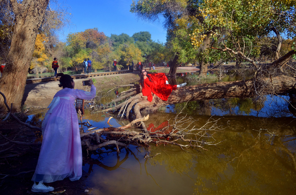 想要更好地欣赏胡杨树的美景,最佳的观赏时间和位置非常重要,而且会随着时间和季节的变化而变化(最佳时间是每年九月底到十月中旬),本人认为二道桥最美,因为这里有树有水,还是电影《英雄》的外景取景地,在这里你可以观赏“晚霞撒余晖,胡杨染金秋”的美景。