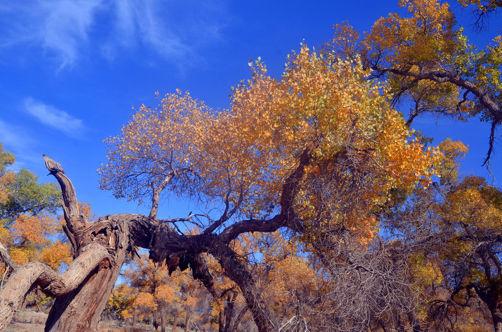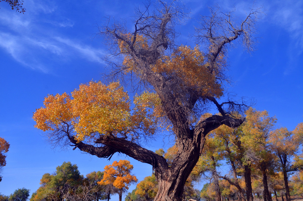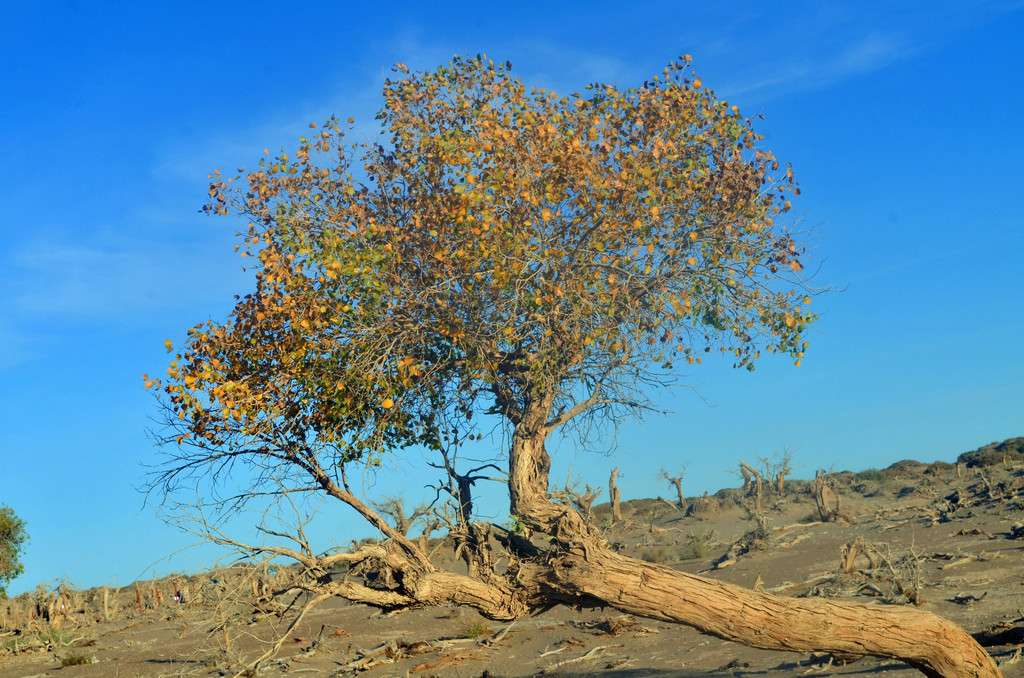 胡杨是生长在沙漠的唯一乔木树种,是大自然漫长进化过程中幸存下来的宝贵物种,且十分珍贵,可以和有“植物活化石”之称的银杏树相媲美,它曾经广泛分布于中国西部的温带暖温带地区。