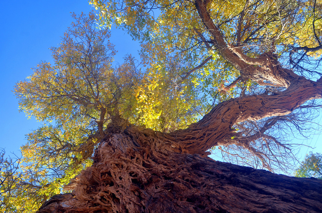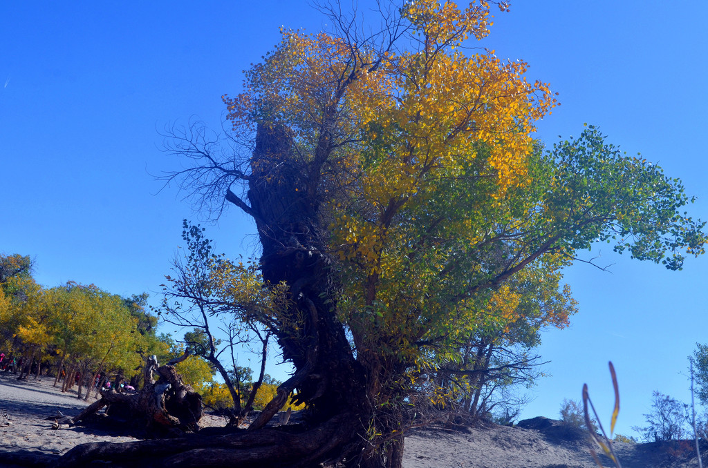 胡杨还是一个神奇的树种,它的生长总是和凤凰与鲜血紧密相连;胡杨还是一个多变的树种,它春夏为绿色,到了深秋就变成了黄色,而到了冬天则变成了红色。