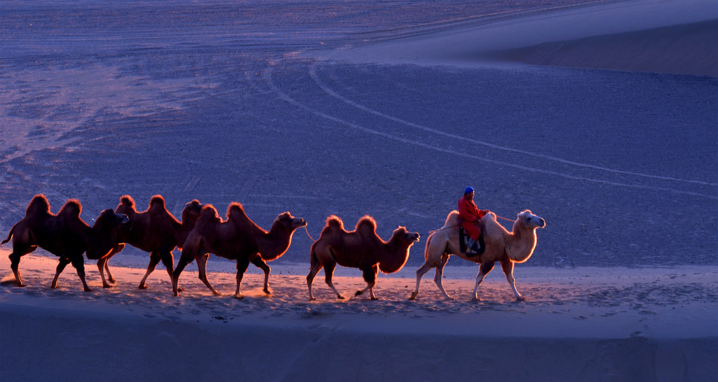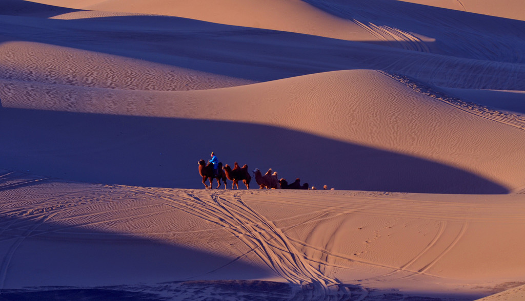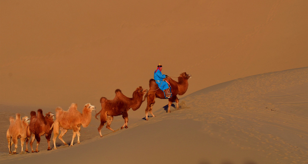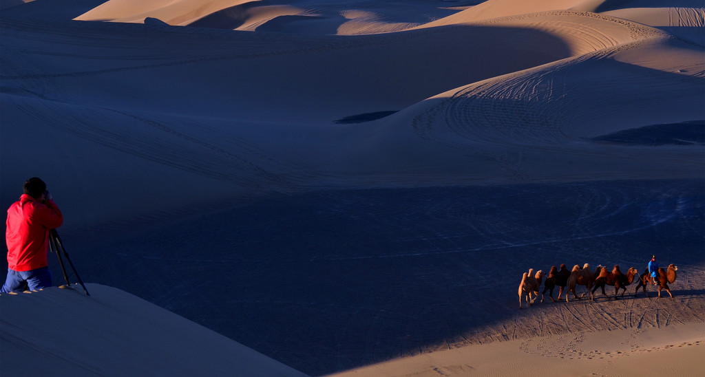 特别提示:如果你是摄影爱好者,八道桥是拍摄沙漠日出、日落的最佳地方,这里还可以拍摄人像和骆驼在沙漠中行走的魑影等(早晚均可),但前提是时间非常早,你必须赶上景区在日出前提前安排的专班车赶到这里;你要拍到美片、好片,还必须出钱请(骆驼大概一匹200元)或者找到有摄影团的旅行团队,沾光拍摄。