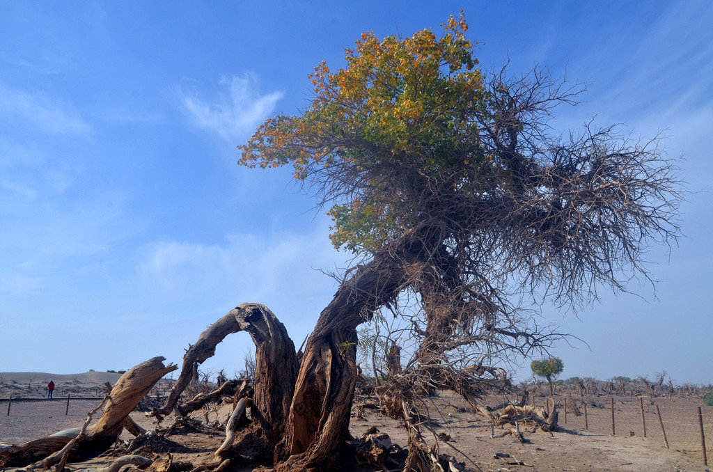 由于篇幅的局限,此篇游记只写了胡杨生长、成活时期的美,但死后的胡杨更加刚毅顽强,更显悲伤,更显激昂,也更显悲壮,那是另外一种美,另外一种张狂,另外一种荣光。我将在下篇游记有关怪树林中一一道来,敬请大家关注欣赏。
