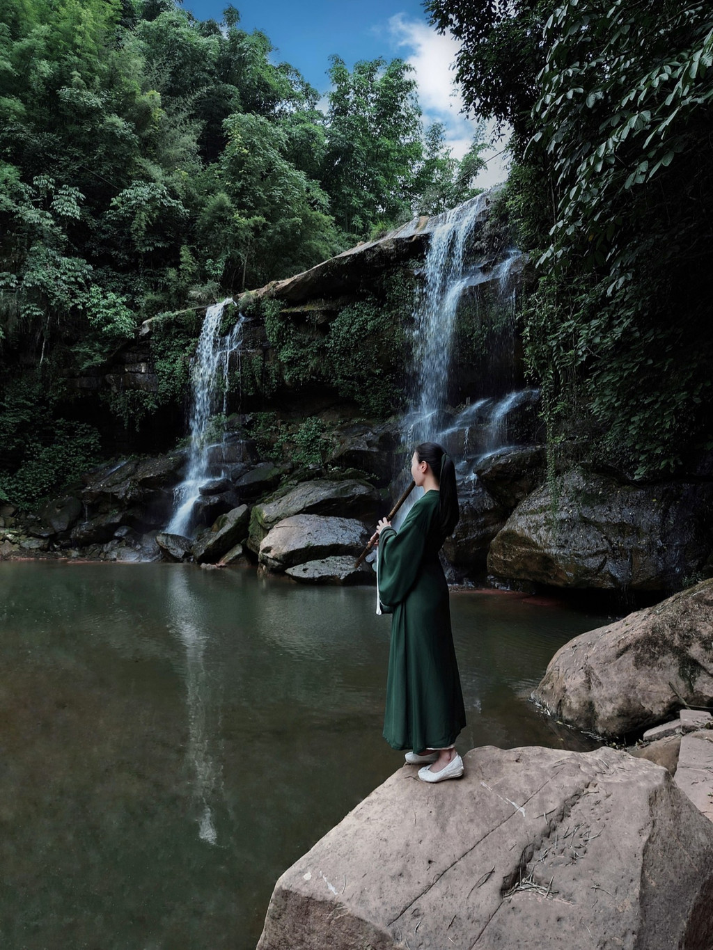 抛开了心中的羁绊,寻声走进去,去聆听那大自然的清音。身心徜徉于青山绿水之间,如此,心便是宁静的,淡泊的,有种气定神闲的洒脱与自在。