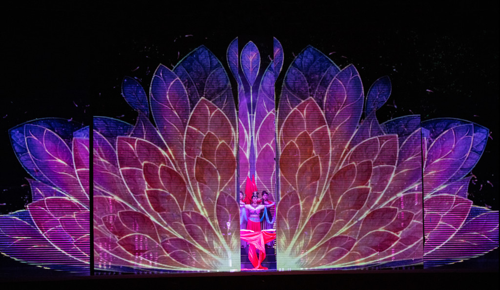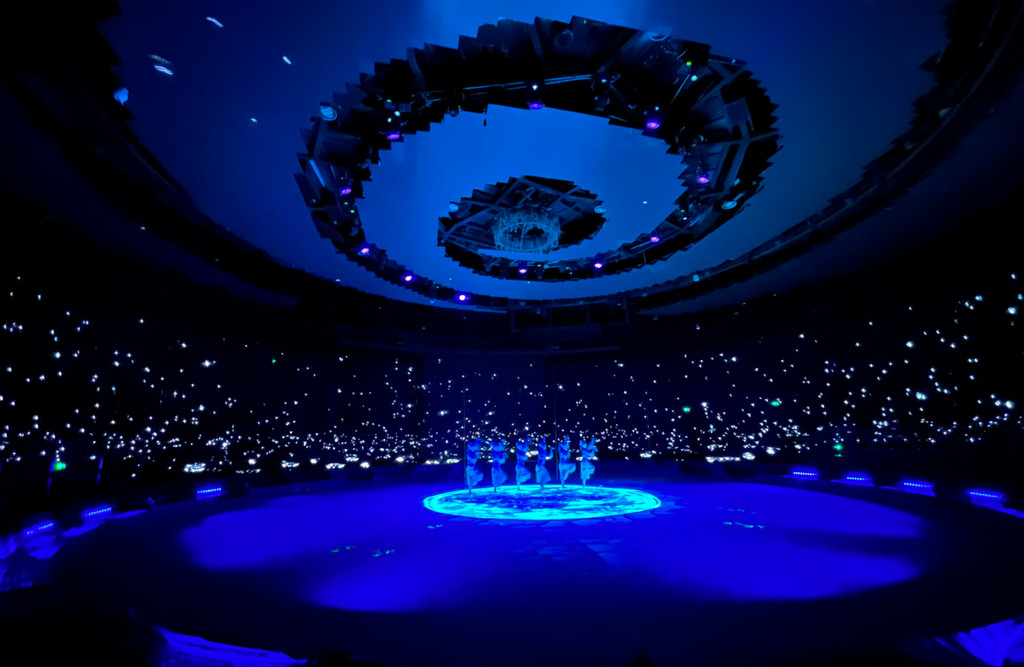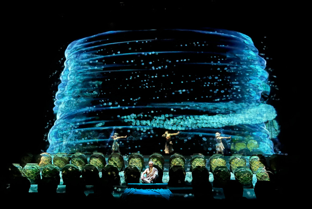 《天酿》演出是全球首个大型新媒体空间体验秀,通过天赐、天问、天遇、天路、天宴剧幕加上现代科技声、光、电、全息影像,展现国酒酱香古法酿造全过程。
