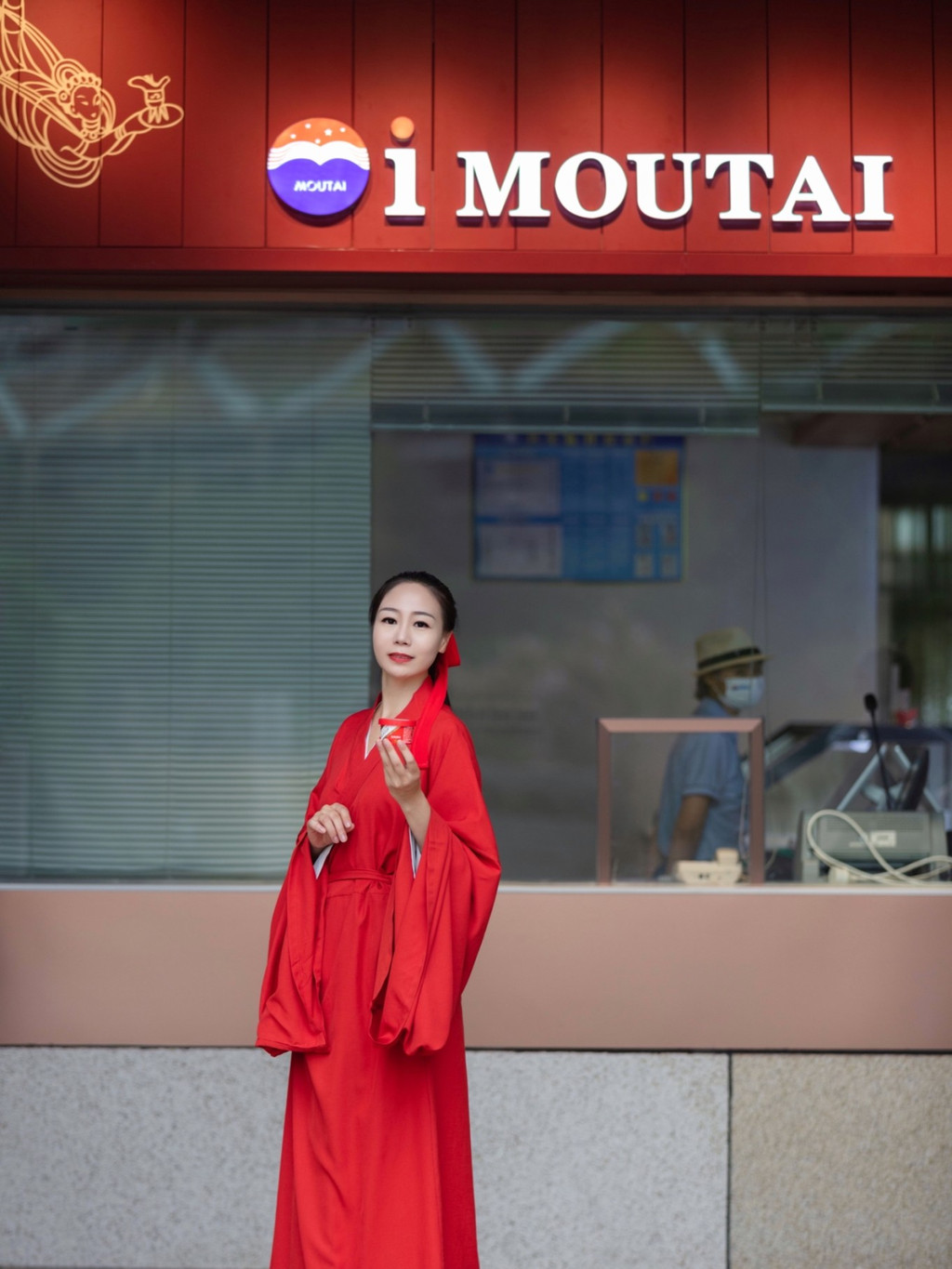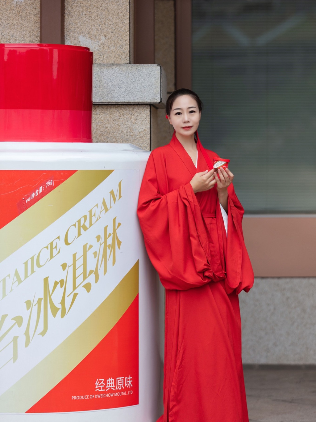 茅台大酒店是茅台冰淇淋的第一家旗舰店,位于酒店的一楼,穿着古装来吃冰淇淋,也算是头一回了。