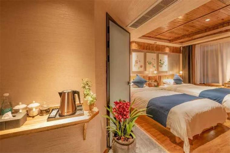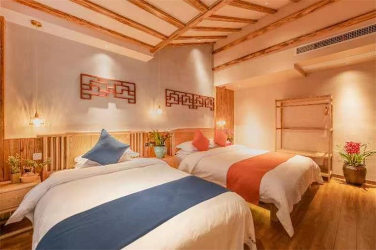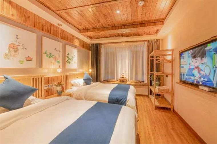 客房和餐厅原木本色白蜡木家具,客房智能化声控系统、电信iTV电视、 百兆网络wifi上网系统、可调式中央空调、大屏幕液晶电视。精心设计的客房,人性化的空间规划与房间设计,为您提供安全、卫生、舒适的休憩环境。“GoodMorrow 只为更好的出发”姐妹食尚朴宿希望用宁静暖居和自然朴实的能量,为中途停靠的您补充能量,助您自在前行!