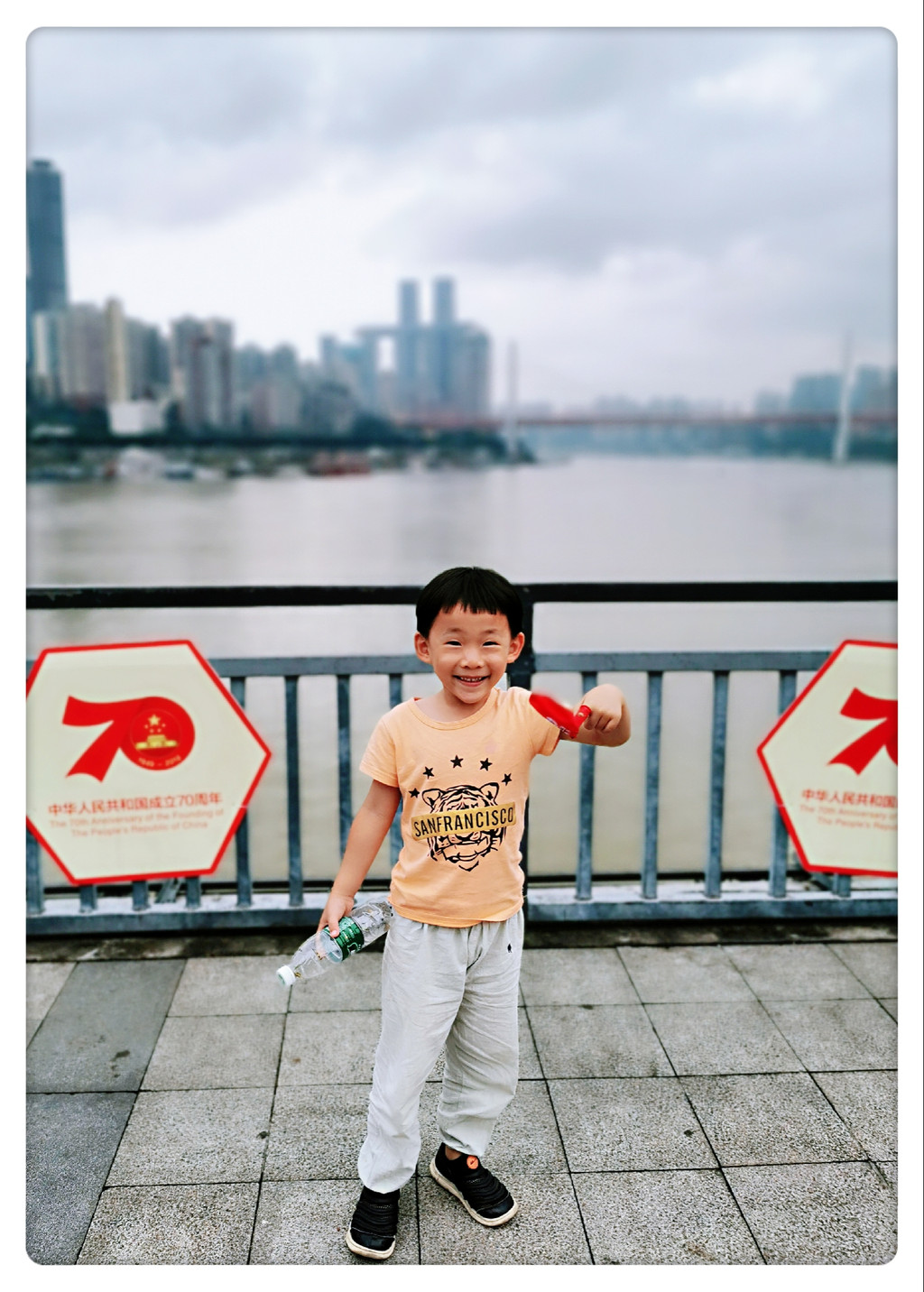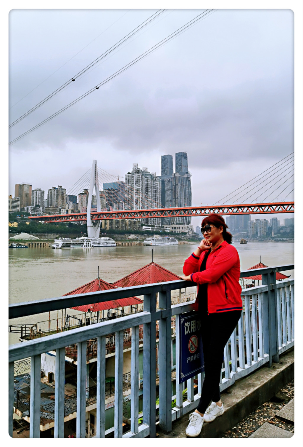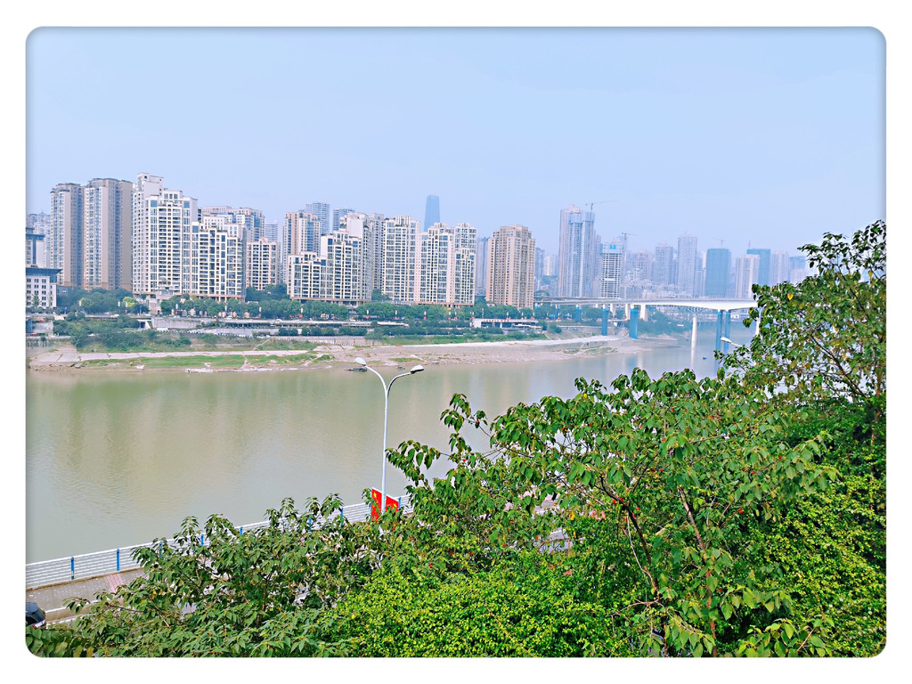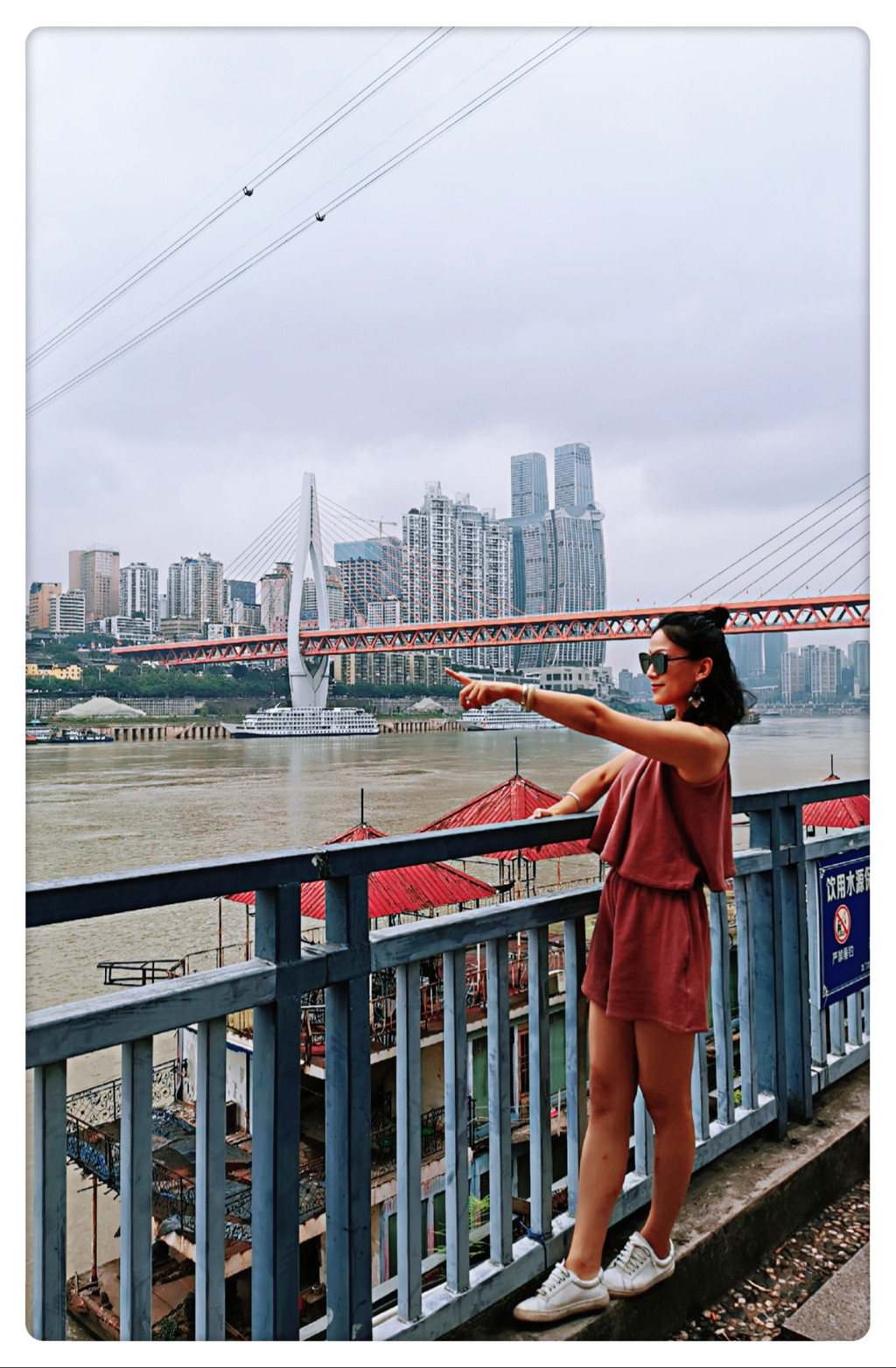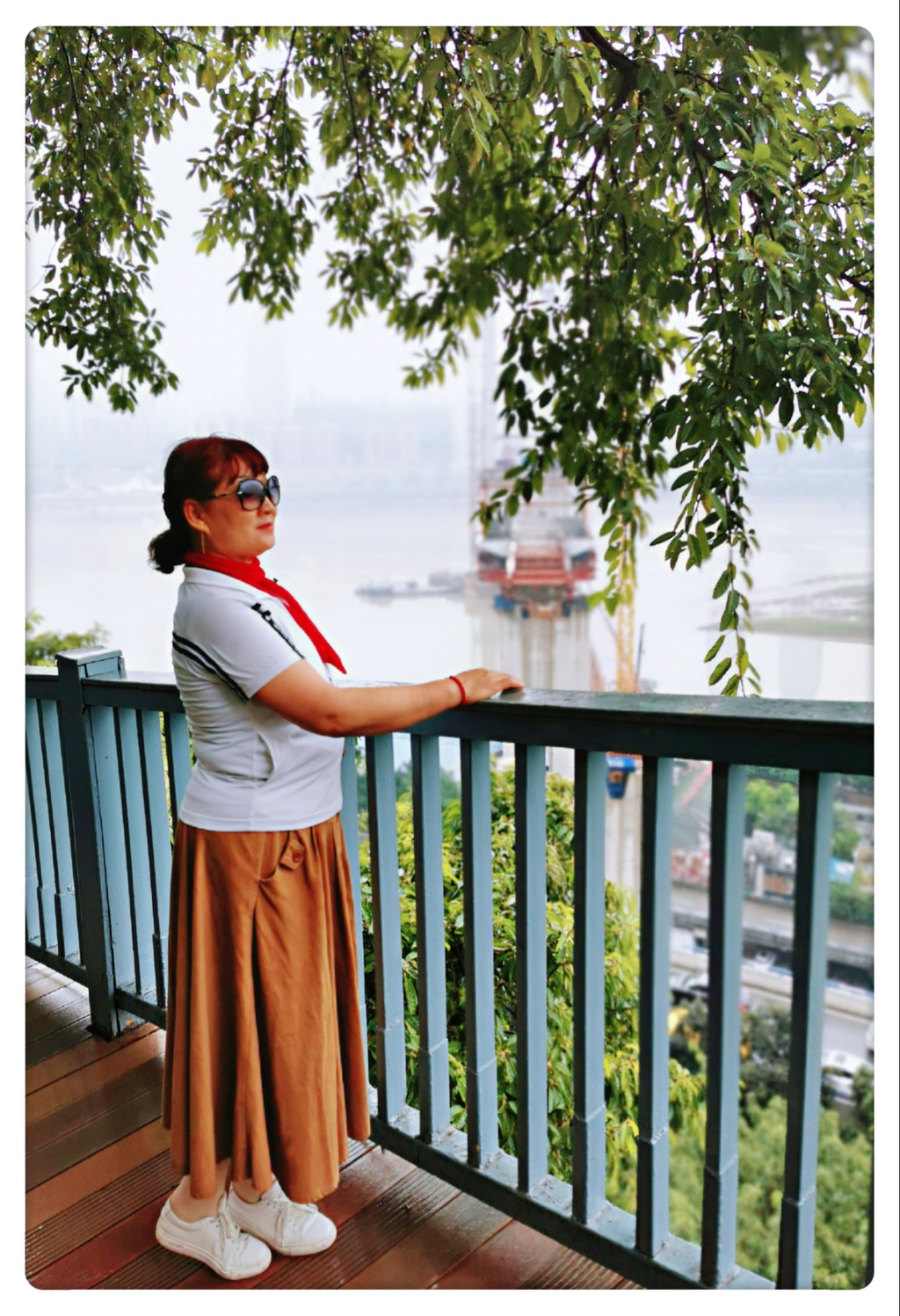 当我们站在嘉陵江边,一群人都抬头望着轻轨站时,其实真的还蛮可笑的,当时我就在想,我们傻傻的一群人看向轻轨的同时,轻轨里的乘客也一定在看向我们,他们一定在想,看看底下这群游客,还专门过来顶着大太阳看我们,不过只是一个交通工具而已呀。这正如卞之琳在《断章》里说过:你站在桥上看风景,看风景的人在楼上看你。明月装饰了你的窗子,你装饰了别人的梦!有些瞬间,终其一生都会牢记,而有些执着,无论身处哪种境遇,都不会丢弃。哈哈哈,所以,不如,我们还是好好的欣赏嘉陵江美景吧!