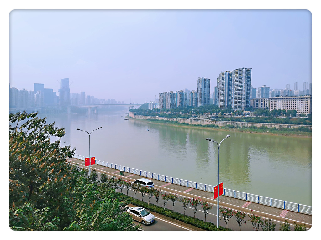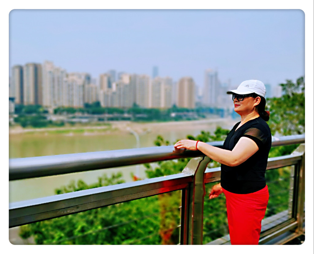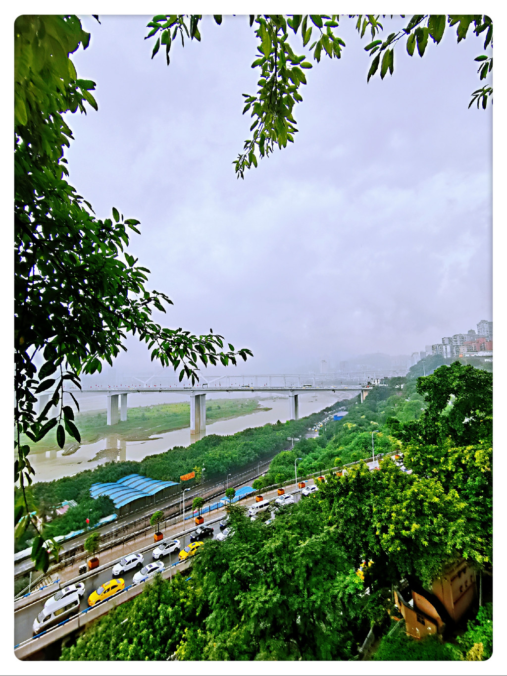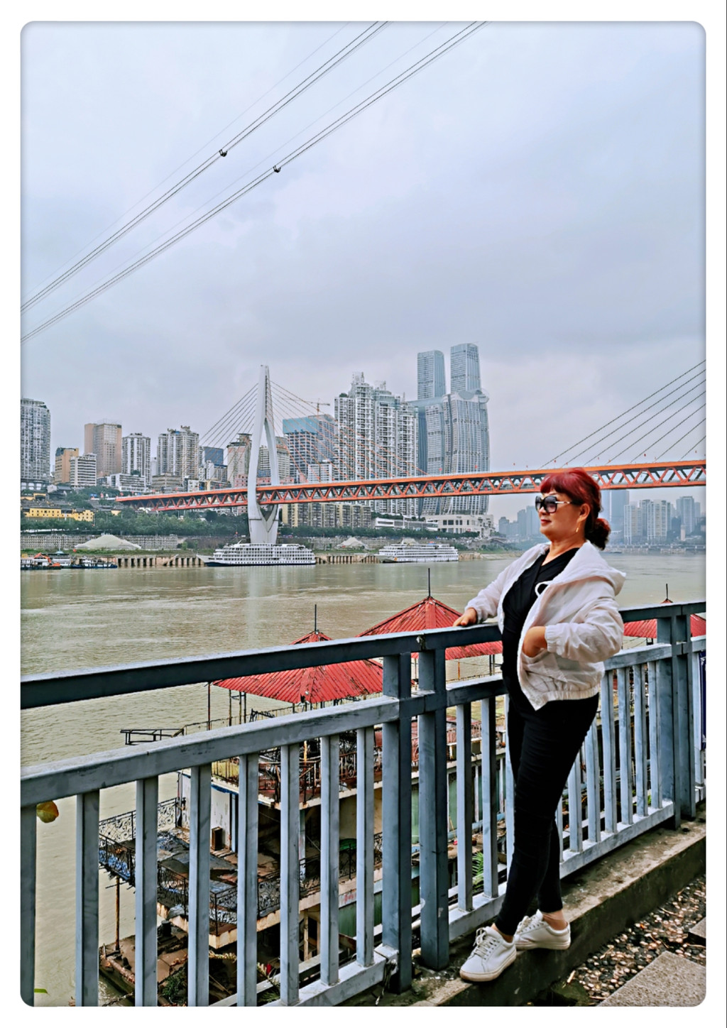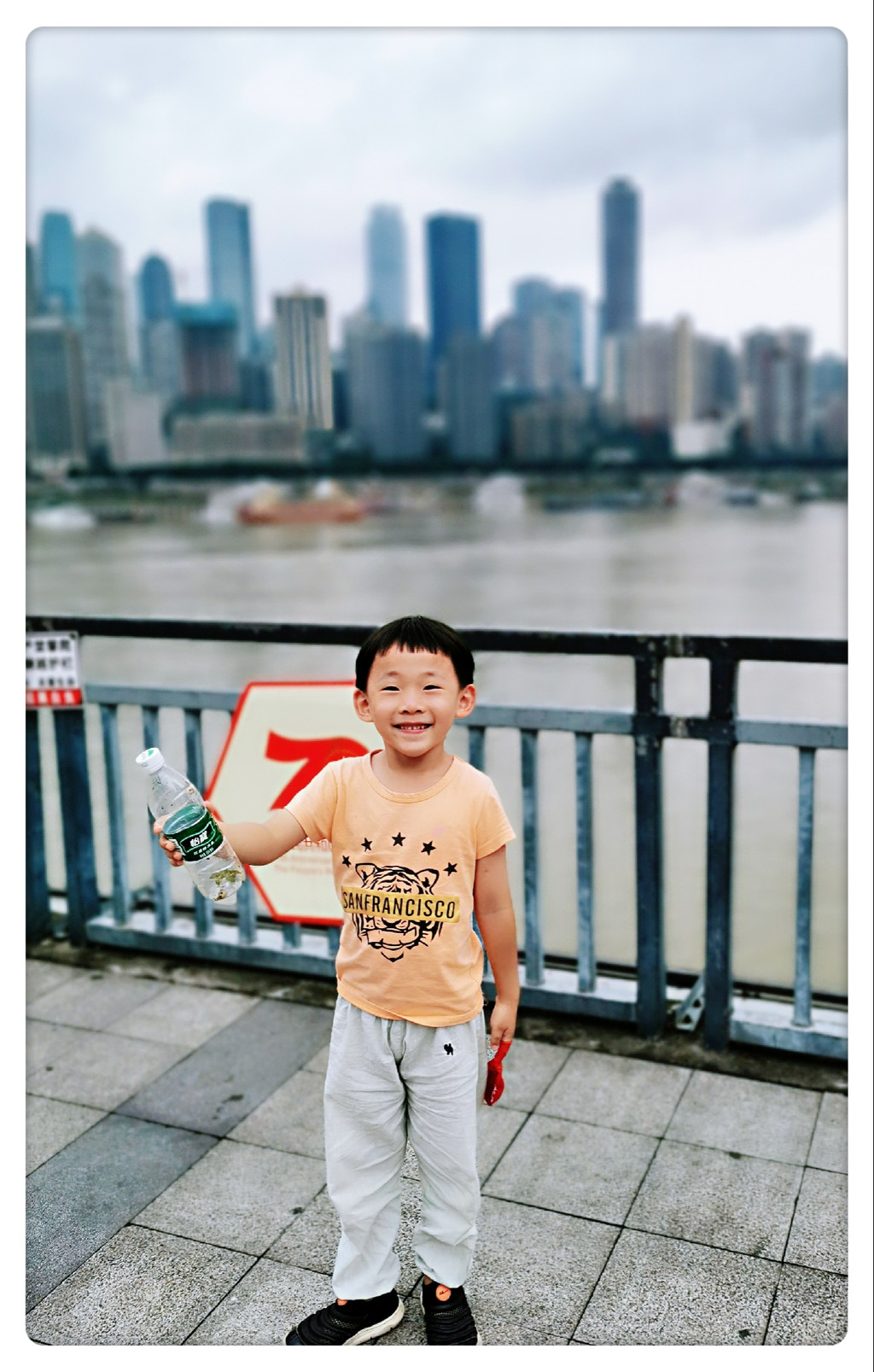 当我们站在嘉陵江边,一群人都抬头望着轻轨站时,其实真的还蛮可笑的,当时我就在想,我们傻傻的一群人看向轻轨的同时,轻轨里的乘客也一定在看向我们,他们一定在想,看看底下这群游客,还专门过来顶着大太阳看我们,不过只是一个交通工具而已呀。这正如卞之琳在《断章》里说过:你站在桥上看风景,看风景的人在楼上看你。明月装饰了你的窗子,你装饰了别人的梦!有些瞬间,终其一生都会牢记,而有些执着,无论身处哪种境遇,都不会丢弃。哈哈哈,所以,不如,我们还是好好的欣赏嘉陵江美景吧!