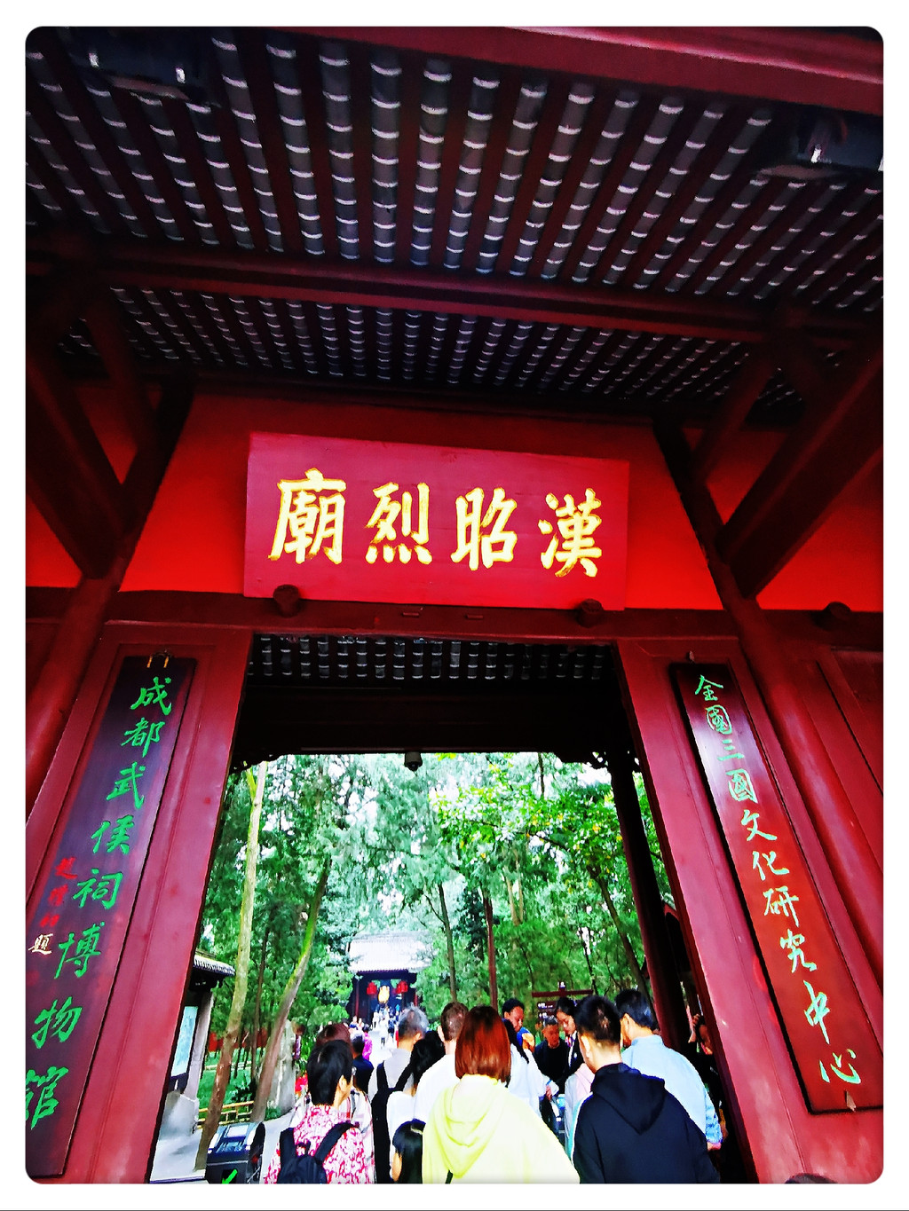 武侯祠和锦里古街仅一墙之隔,祠内纪念的是三国时期蜀国丞相诸葛亮,初建时曾与昭烈帝刘备的祠庙相邻,在明朝初年并入汉昭烈庙,成为中国唯一君臣合祀的祠庙。