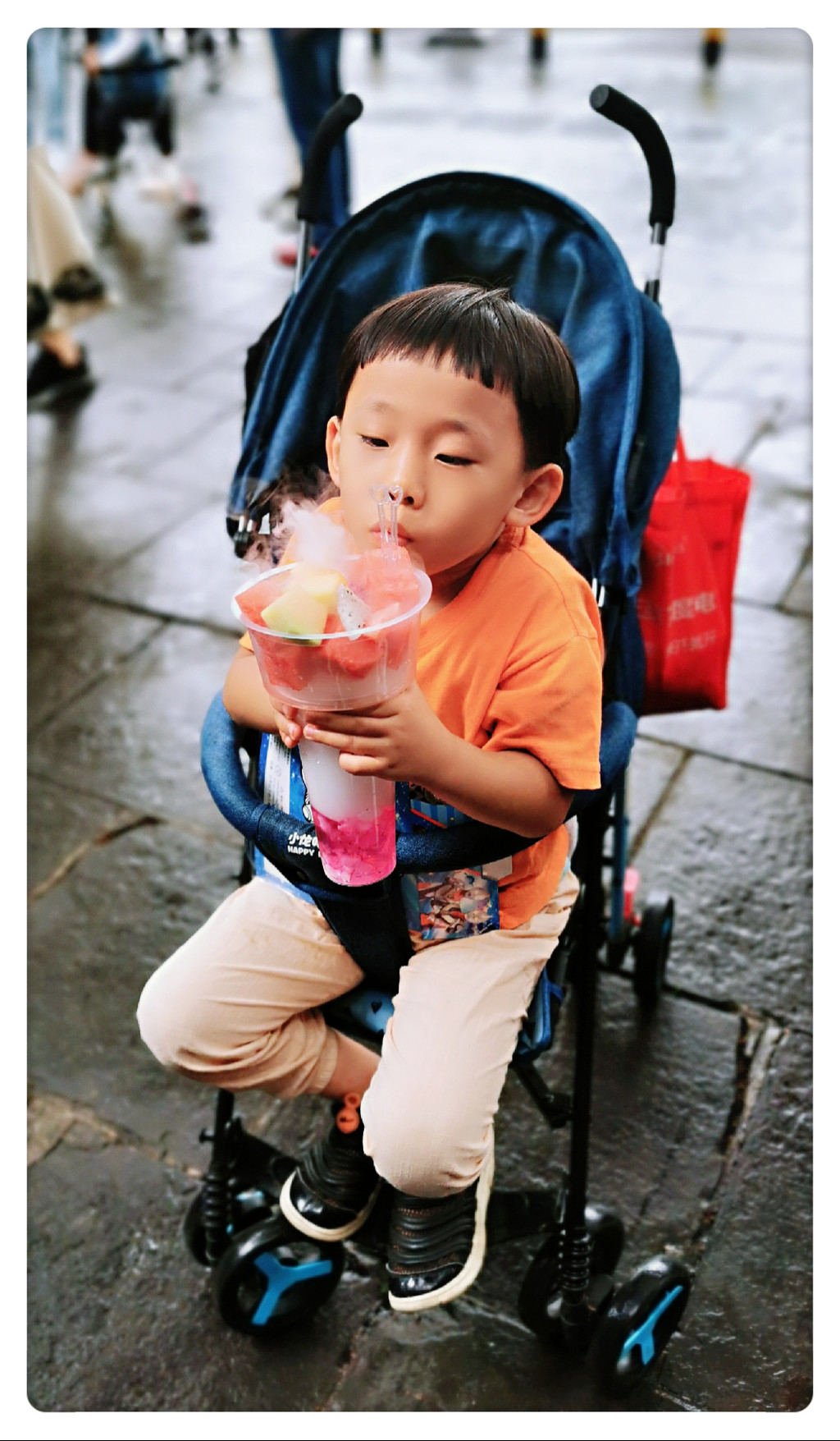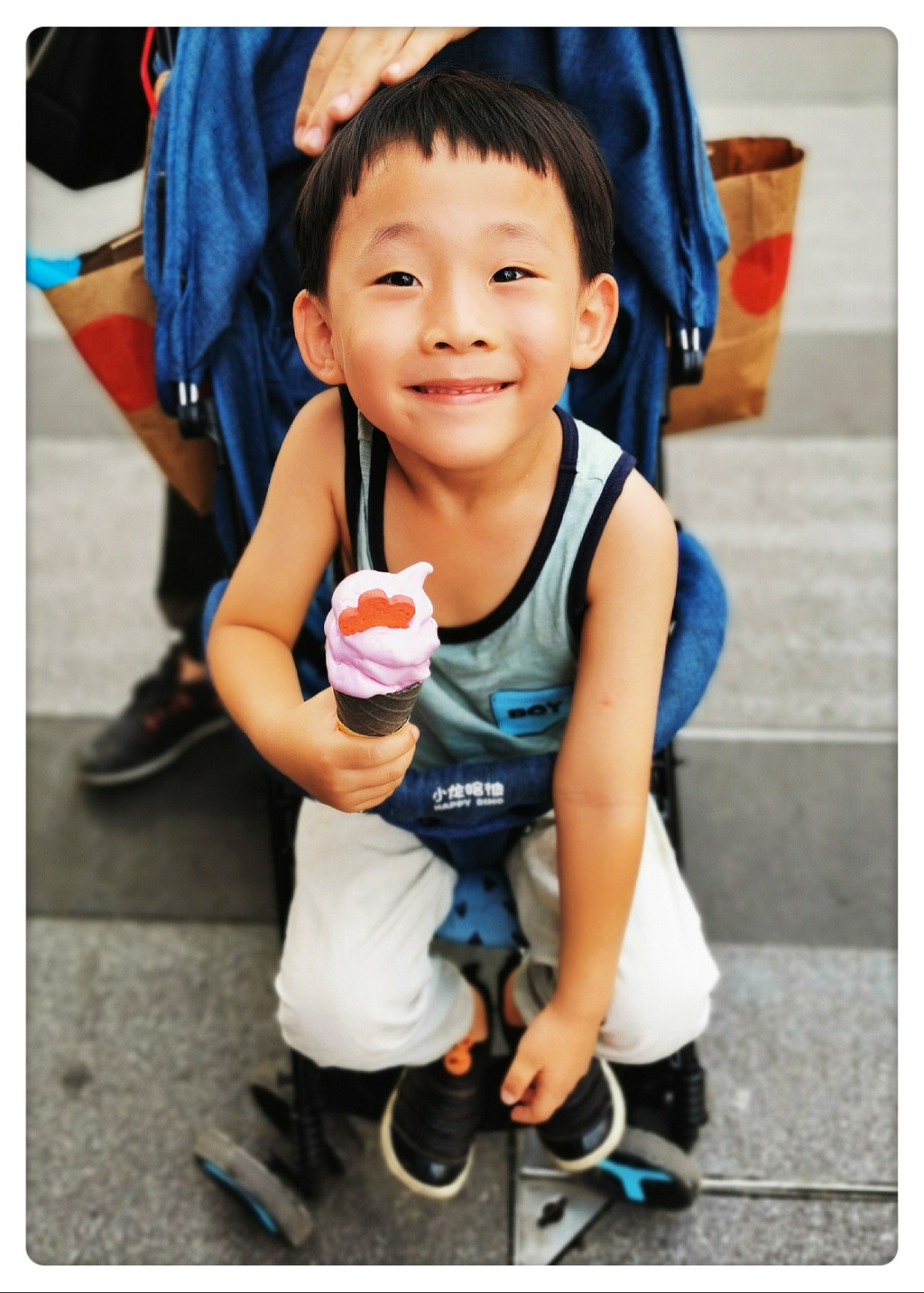 我们小天儿呢,无论在哪个城市玩耍,都会有这样坐在“小宝马”里吃好吃的照片,哈哈,我想,我应该专门做一个相册,记录他从三岁开始,每一个旅途中所有的吃吃喝喝,看着他每一次的成长,每一次的变化......看,小天儿笑起来,和我一样,也有一个梨涡,哈哈,还是我的基因更强大,哼哼哼
