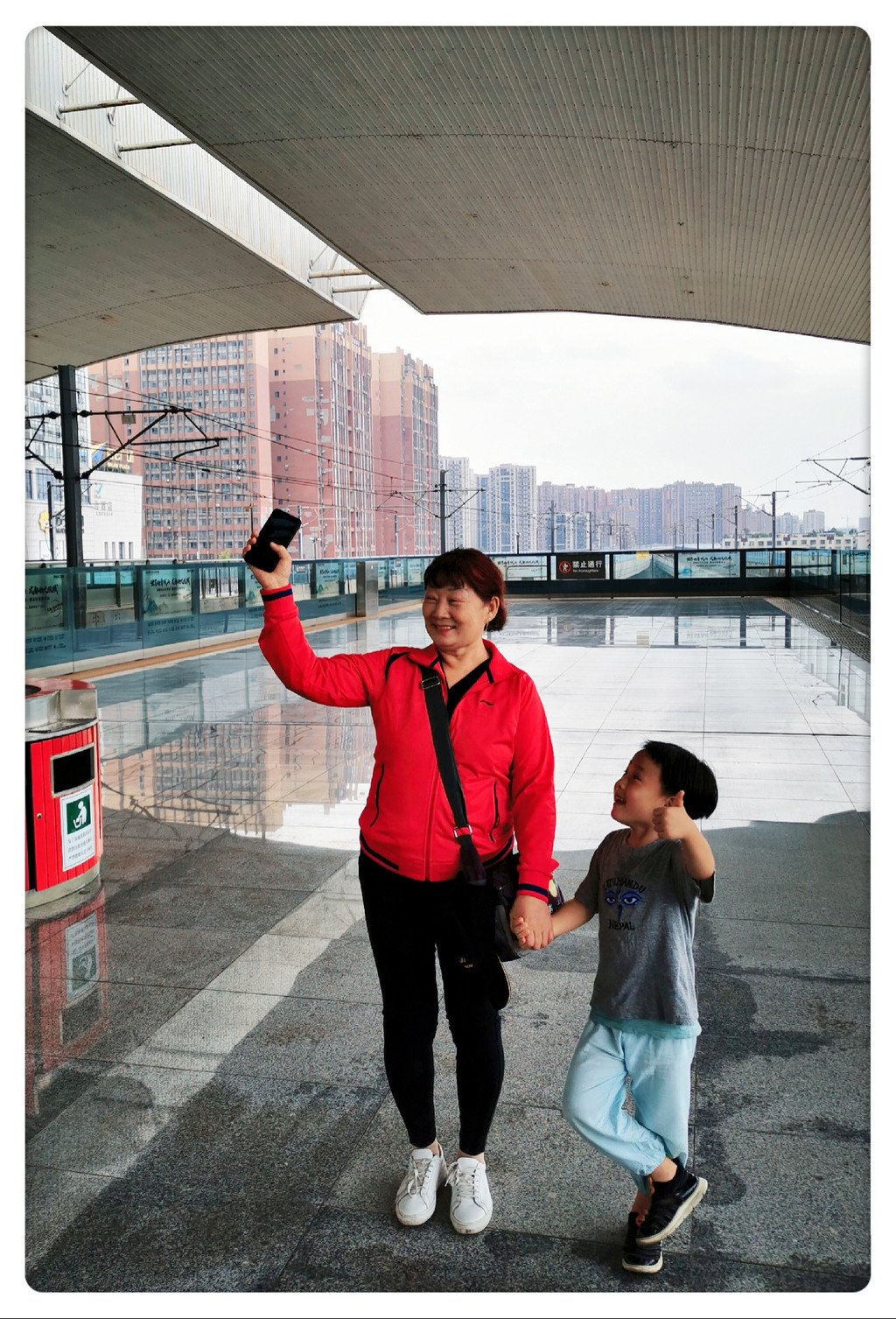 皇冠大扶梯,是山城的又一个网红打卡地。扶梯的一端连着皇冠大厦,另一端是菜园坝火车站,全长约112米,运行时间约2.5分钟。哎呀,真的是好长好高,而且大扶梯的速度比一般的扶梯要快很多,加上30度的倾斜角度,站在上面,无论是身体感受,还是视觉冲击,都是非常的刺激呀。本来平时没有电梯恐惧症的我,站在上面,这次竟然紧张的是一动都不敢动,原本想拍一些照片留纪念,现在都不敢了。反倒是平日里不敢坐电梯的姥姥呢,这次竟然还有说有笑的拍照片呢,还在后面不停的逗我,哈哈,还有我们小天儿,也是勇敢的安慰我,让我想起了在武汉东湖那个栈道上紧张到不行的我,也是小天儿来安慰的,哈哈