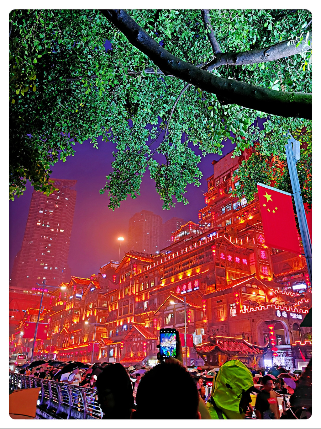 洪崖洞民俗风貌区是逛山城老街、观赏两江风光、品尝当地美食的好去处。以具有巴渝传统建筑特色的“吊脚楼”为主体,依山就势,沿江而建。通过分层筑台、吊脚、错叠、临崖等山地建筑手法,把这一片建筑汇聚在一起,夜晚时候灯火通明,堪称山城一景。夜景简直美爆了,虽然老妈和关小磊并不清楚我们排了一通队过来到底看了个啥,也不知道我为啥还要自己亲自再走遍重新看一下,哈哈,但是,我想说的是,为了一睹洪崖洞的容颜,真的是太值得了,她的神奇之处,是在与你从不同的角度观看,都是不一样的震撼!