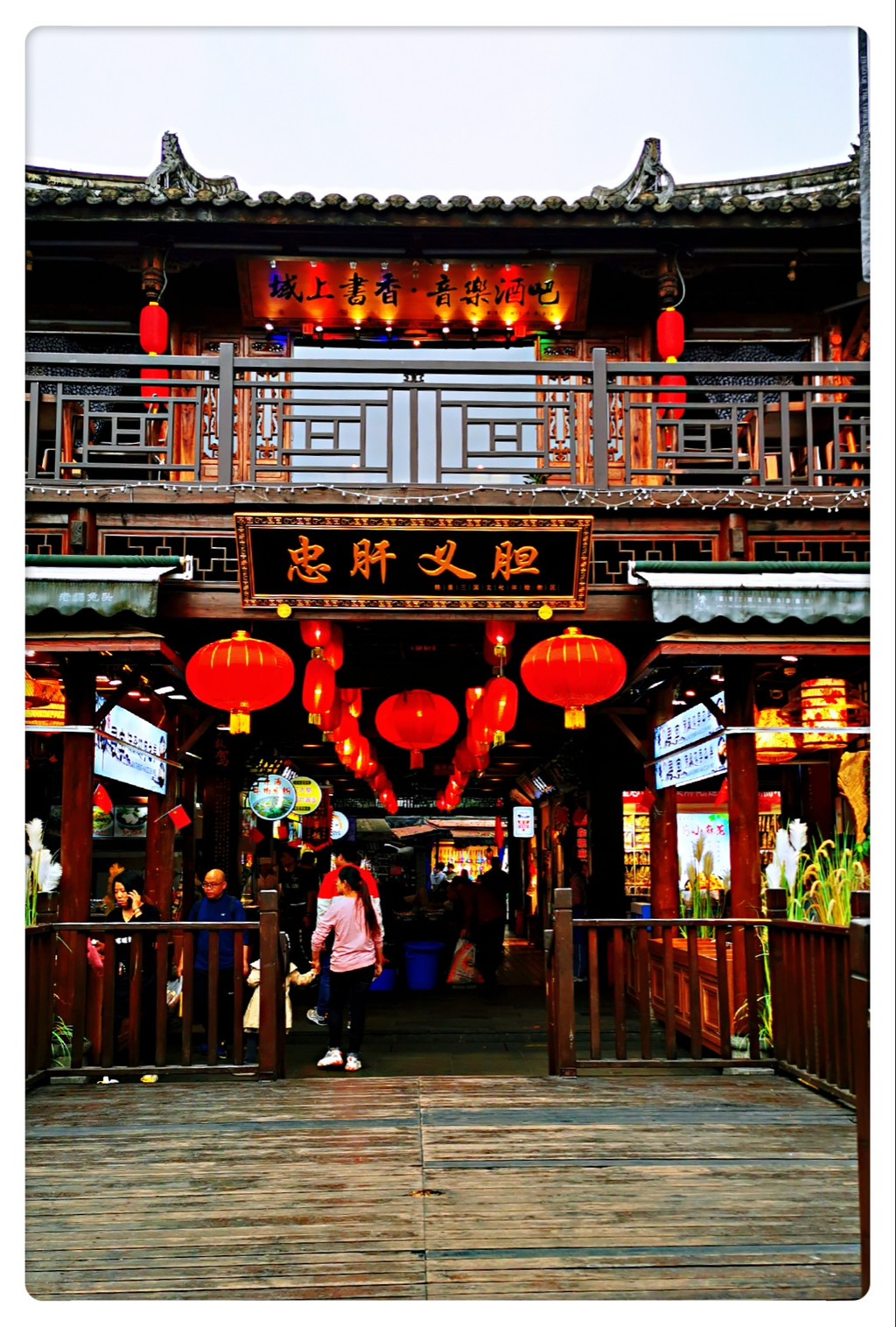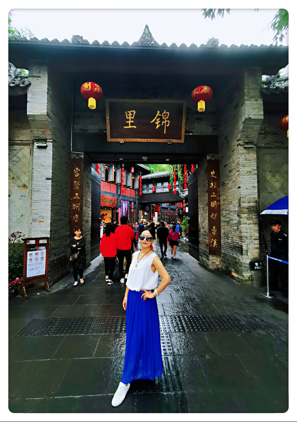 锦里古街是成都知名的商业步行街,由一大片清末建筑风格的仿古建筑组成,拥有众多民居、酒吧、餐饮名店,有名的景点武侯祠也在其中,与武侯祠一墙之隔。这里洋溢着成都特有的喧嚣和随意。古街里青瓦错落有致,青石板路蜿蜒前行,街道两旁店铺里摆着许多颇具当地特色的物品,有手工的皮包、有五颜六色的布灯笼等,还有众多老成都手艺人制作吹糖画、捏面人。此外,这里各色美食也会令你垂涎三尺,有张飞牛肉、豆花、牛肉焦饼、钵钵鸡等,各具风味。于是,在成都的第三天,我们就来到了锦里古街。