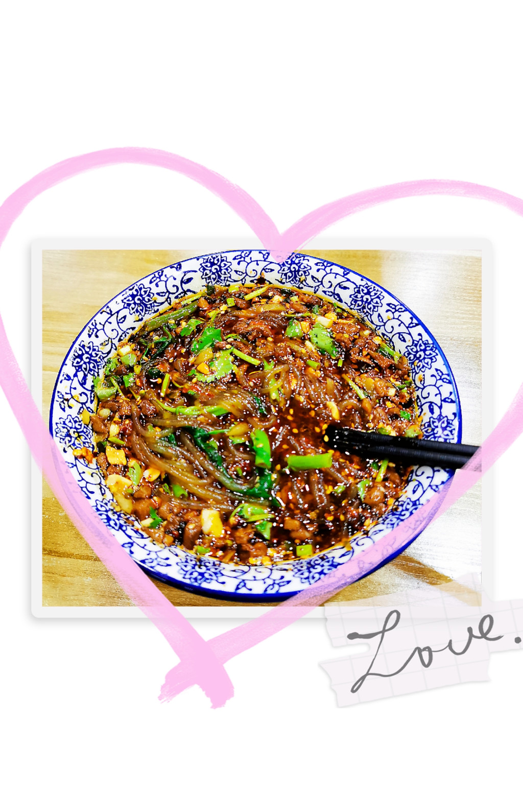 快乐的时光总是过得很快,不知不觉,黄昏旧到了,小天和芭比玩好啦,我们也该回酒店啦,安顿好姥姥和小天,我和孩儿爸就出去觅食啦,中午吃的太饱,晚餐就简单些吧,就打算在楼下的小店吃份夹肉饼、酸辣粉算了,没想到,一碗小小的酸辣粉,却好吃到让我如此难忘,也颠覆了我这么多年对酸辣粉的认识, 甚至心里怀疑我这三十年来吃的怕是假的吧?因为,这碗酸辣粉,实在是太香、太够味、太好吃啦!