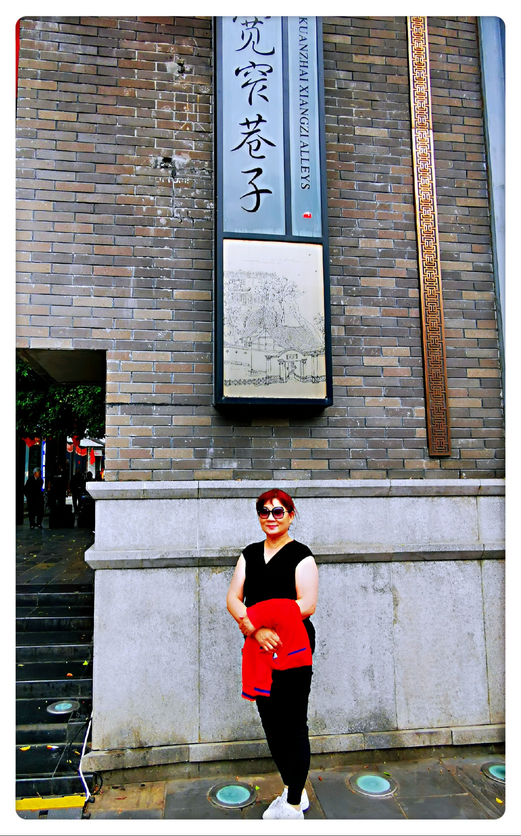 还记得在拍“宽窄”这个背景时,一大群人排队在那里,一个一个的拍,哈哈,就只为了留念~~~~~~