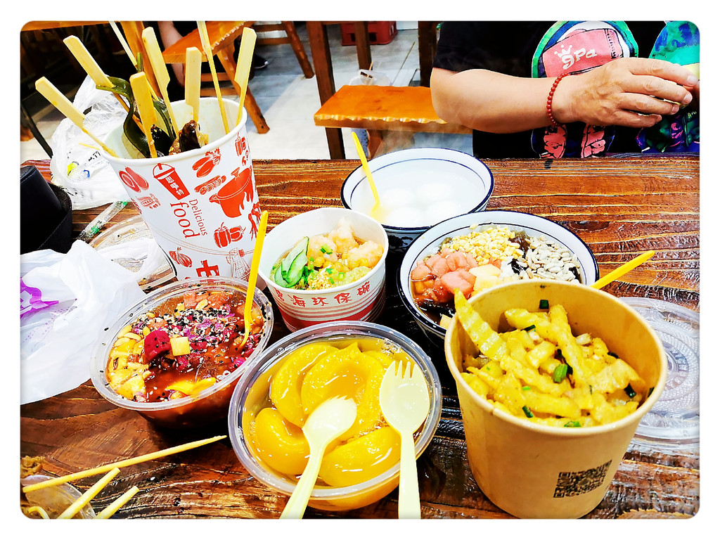 在成都入住的酒店下面,正好是北门夜市,这可是如了关小磊的意了,每天游玩回来,总还要领着我去夜市里逛一圈,买一堆小吃、啤酒,然后陪他一起宵夜......