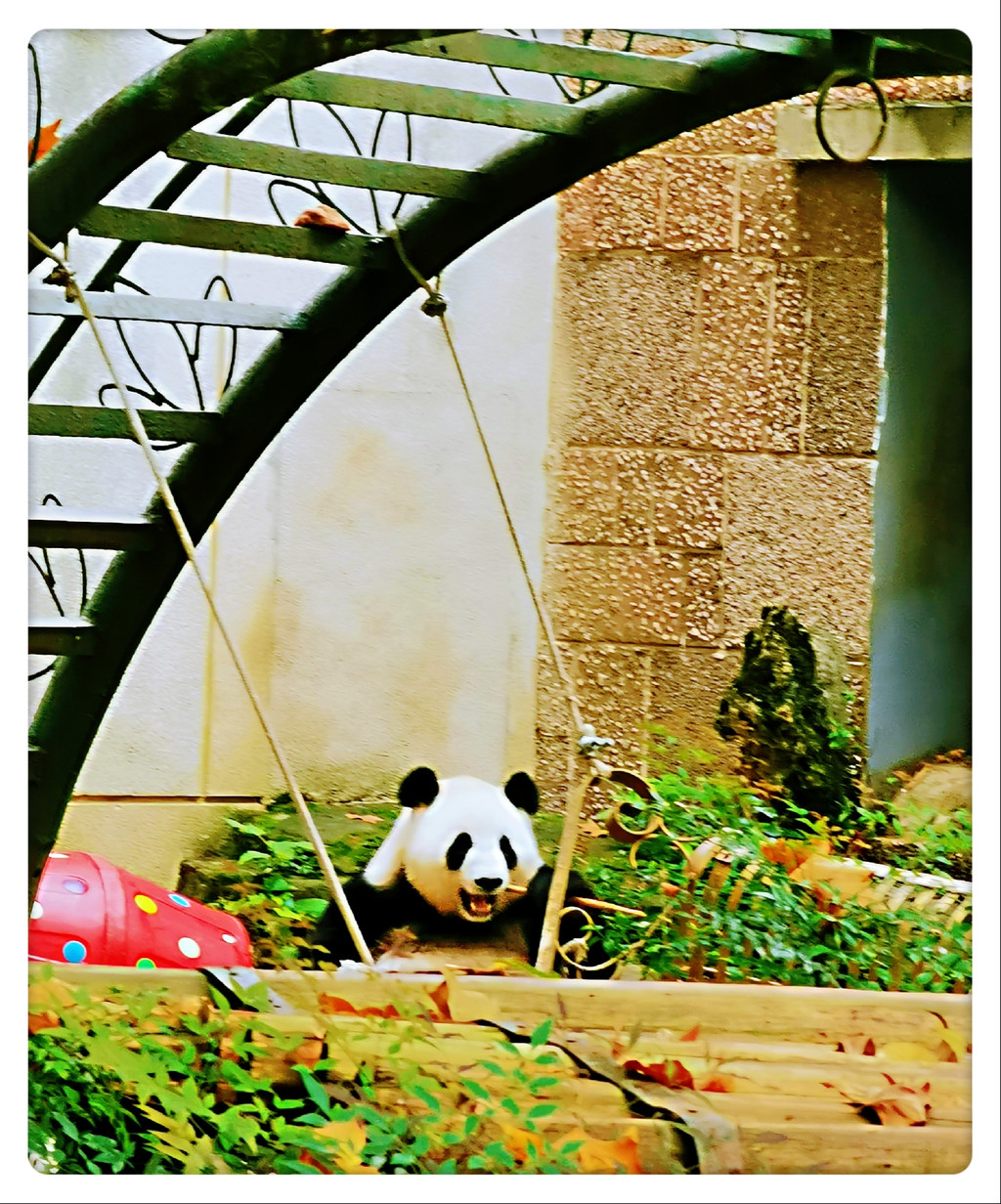 熊猫馆由两个室外运动场、三间空调房、一个室内展出厅及若干间操作间组成。该馆历史悠久,自开园以来就有大熊猫展出。在大熊猫饲养、繁育过程中,成都动物园于20世纪八十年代率先进行大熊猫人工受精研究工作,并取得重大突破,自八十年代开始,每年均有大熊猫幼子出生。所以,我们这一次,也是先从熊猫馆逛起!我们的国宝大熊猫,哎呀,真的别提多可爱了,也是在这里,才知道,原来熊猫是会上树的,而且动作还超麻利呢!