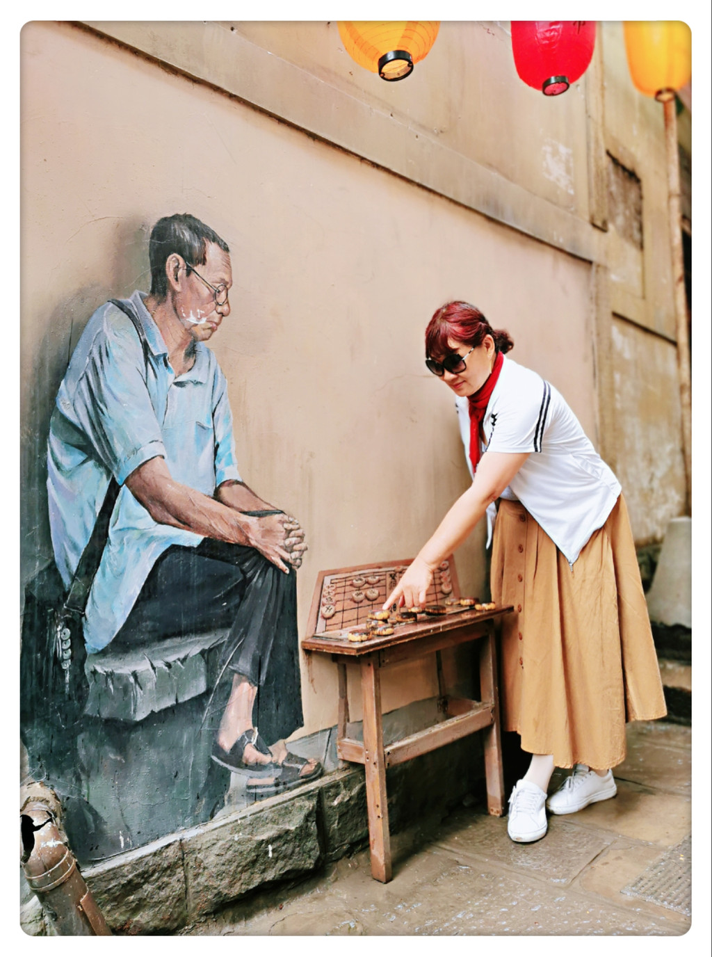 离渣滓洞和白公馆不远,就是著名的磁器口古镇啦,我们来到这个当年热闹的水陆码头,踩一踩脚下的青石板路,品尝一下当地的美食小吃,好好感受一下老重庆的风土人情。每个城市总会有这样一个代表当地特色的“美食街”,那这里最出名的就是“陈麻花”啦~~~哈哈,比比看,谁家的最正宗,谁家的门店前队排的又是最长呢?现在看到这张照片,耳边仿佛还环绕着当时喧闹的人群声,仿佛还游走在这些穿梭过往的行人游客间!