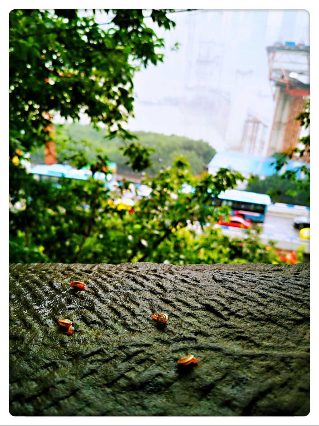 雨后,空气清新,小蜗牛们也都出来散步了,捉了几只,给小天儿看看。