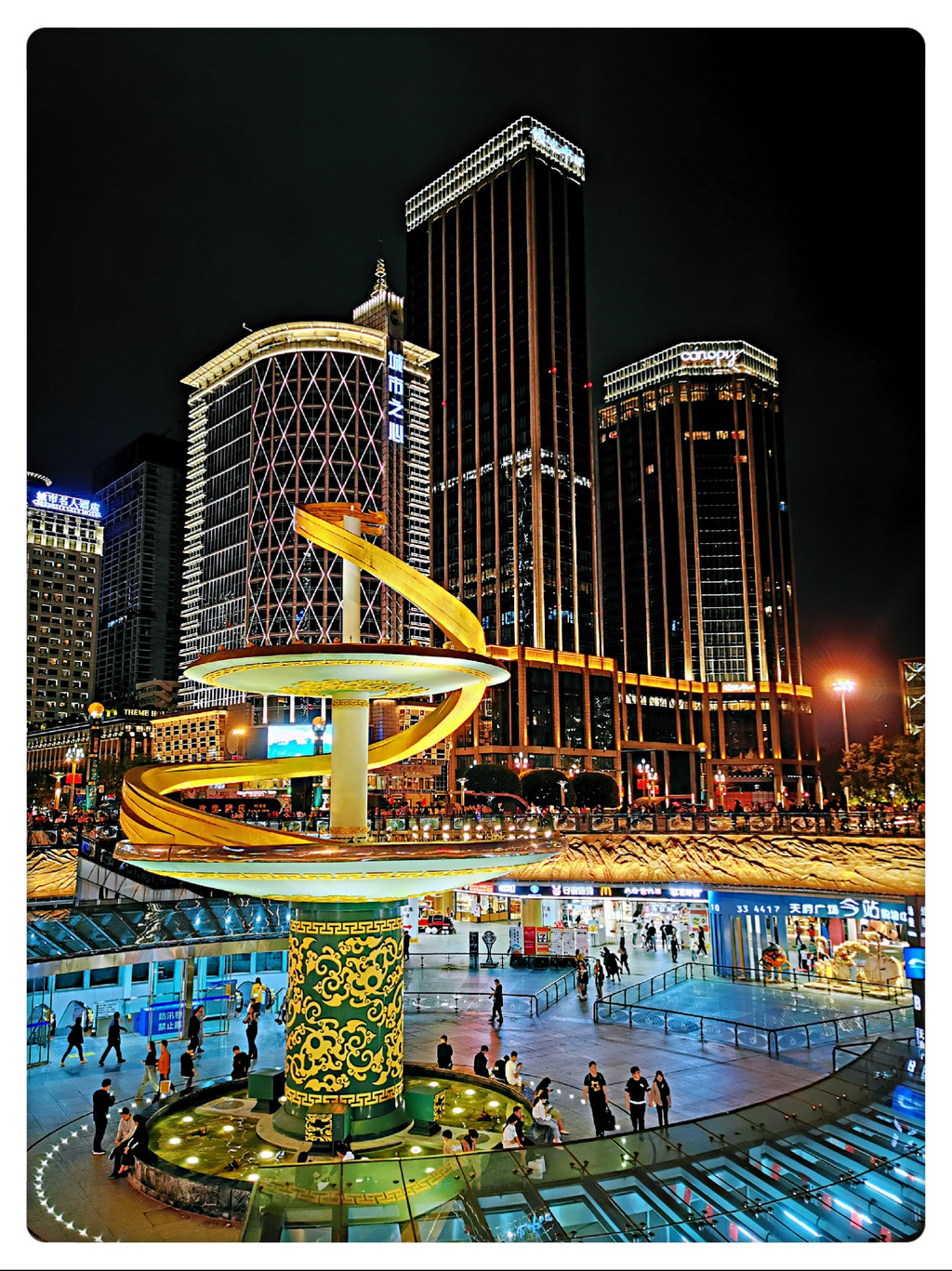 回到成都市里,已经天黑了,在我们每天都要经过的途中,有个大型商场,白天来不觉得有多美多好看,没想到在夜色下竟然如此的绚丽!