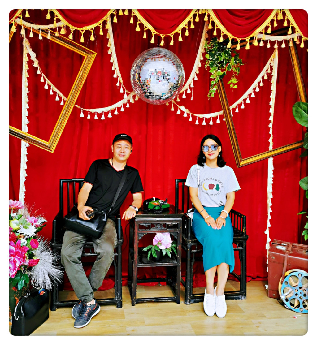 还有这个场景,有没有当年迪斯科舞厅的感觉,哈哈,可是,我俩拍起来,怎么那么像结婚照呢?