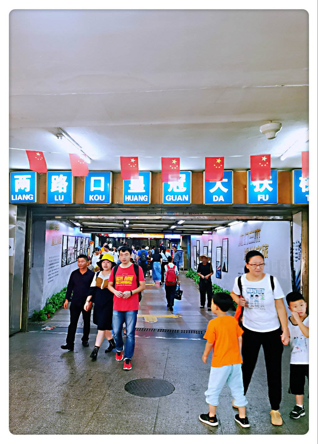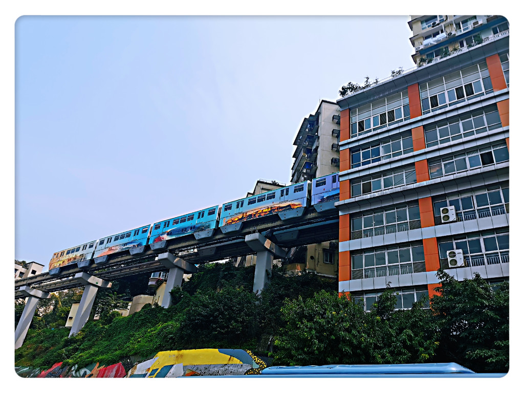 重庆真的是一座不一样的城市,独特的地貌,的独特的风格,是名副其实的城外有城,山外有山。你此时此刻站在一楼的平地上,然后无论你往上走,还是往下走,到了终点,推门一看,咦?怎么还是一楼呢?真的是好神奇!我们从大扶梯出来,就去了下一个网红景点——李子坝轻轨站,亲眼目睹了一下轻轨是怎样从楼房中间穿过的。