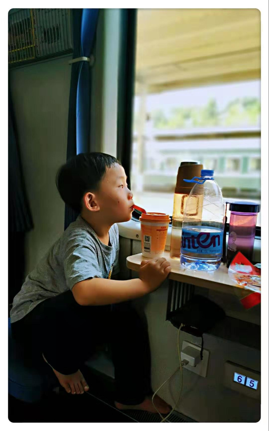 然后,这个机会就来啦!2019年十月,喜逢祖国70华诞,带着老妈、孩儿爸和我最亲爱的小娃子,我们就朝着“雾都”出发啦!已经是名副其实的“小旅友”的关小天儿,早已习惯了旅途上欣赏风景的悠哉,看看这幅悠然自得、放眼看世界的小样子!