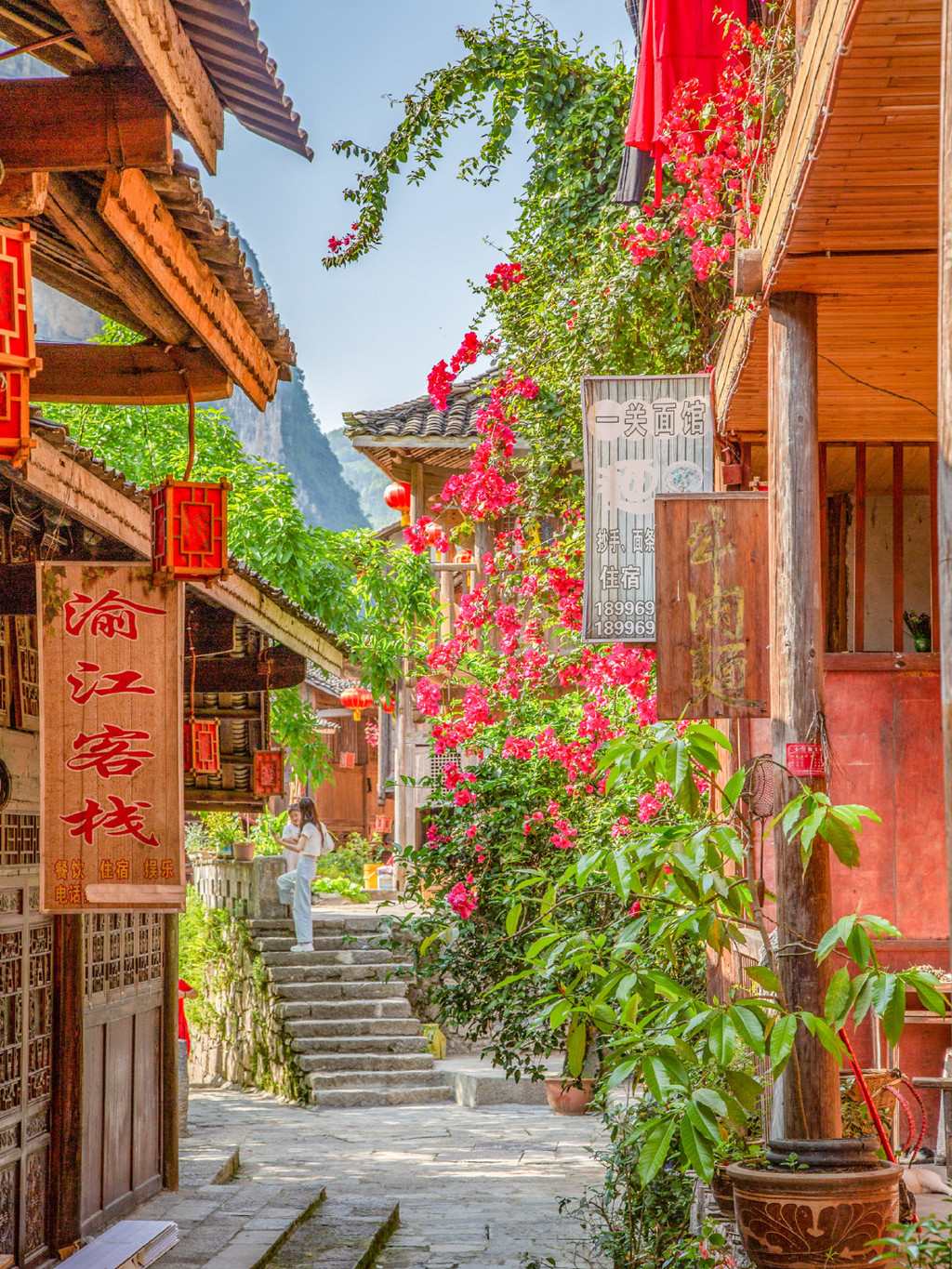 这里的石板街跌宕起伏,曲折幽深;这里的土家吊脚楼,悬空托起、气势恢宏,被誉为“绝壁上的音符”,这里的古建筑如艺术群雕,堪称古建筑史上的珍品,这里也是著名国画大师吴冠中画作中的《老街》。